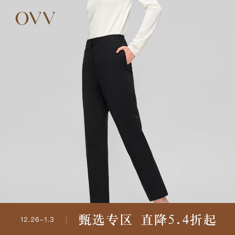 OVV秋冬新款女装挺括羊毛罗马布拉链口袋休闲通勤九分裤