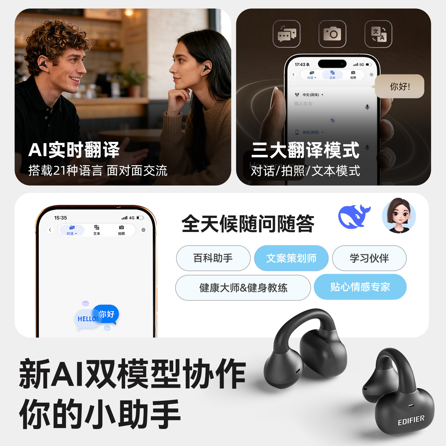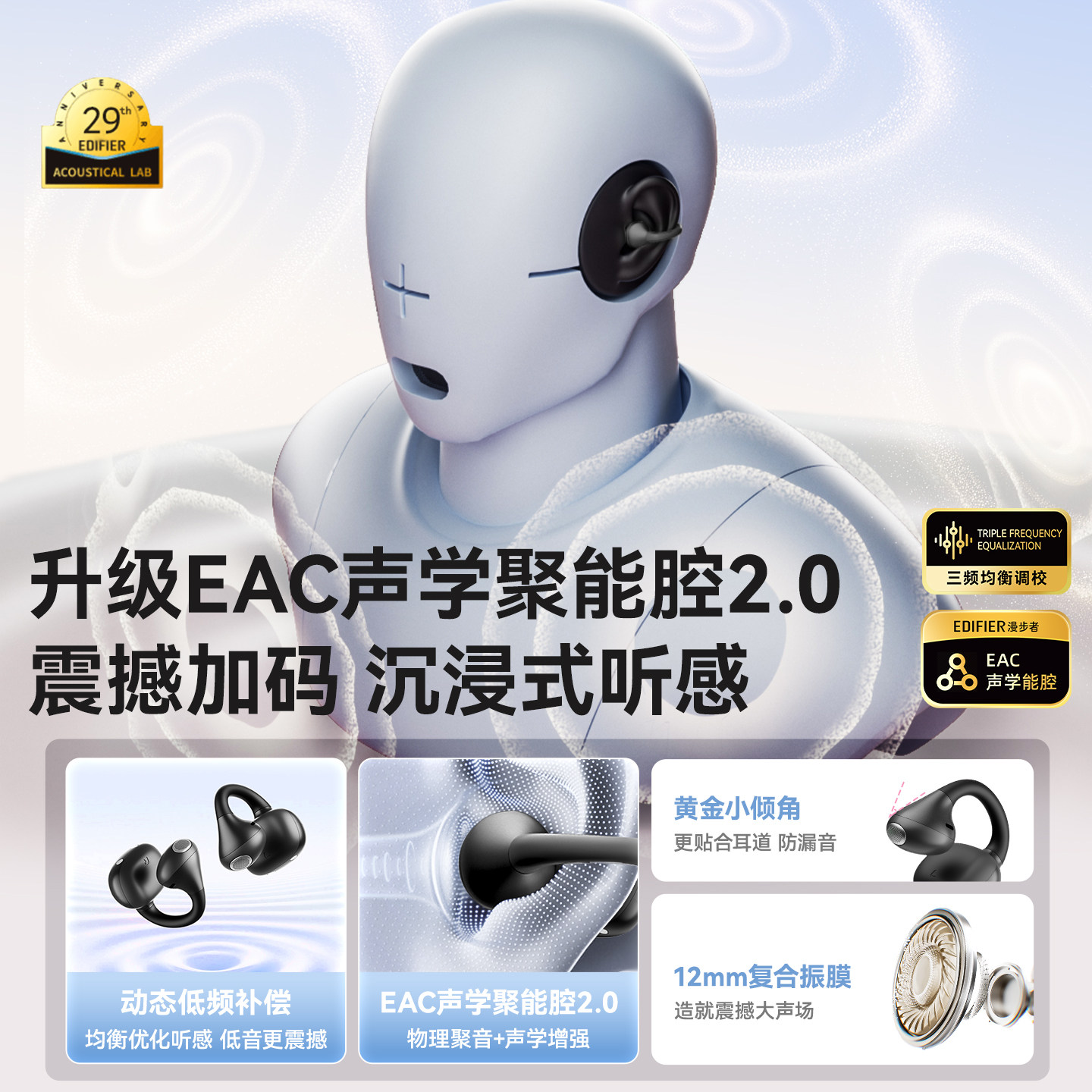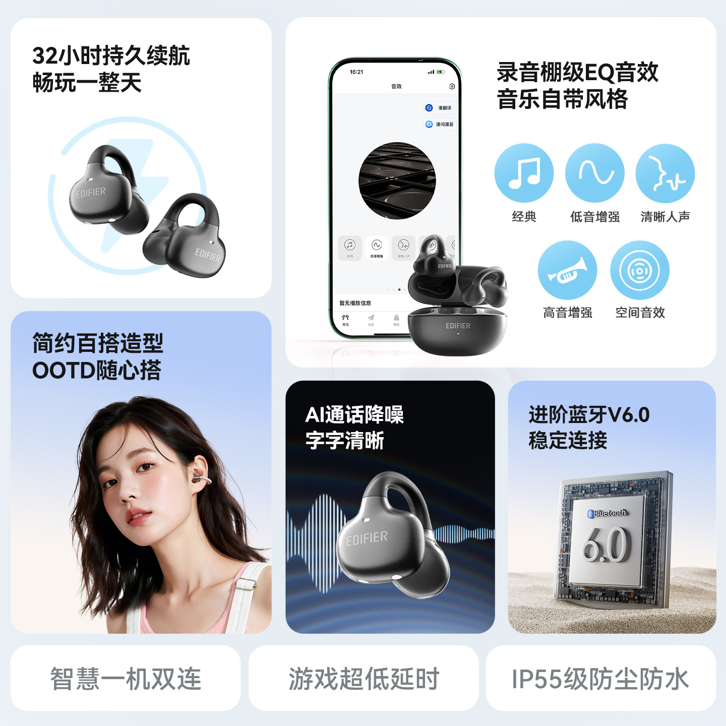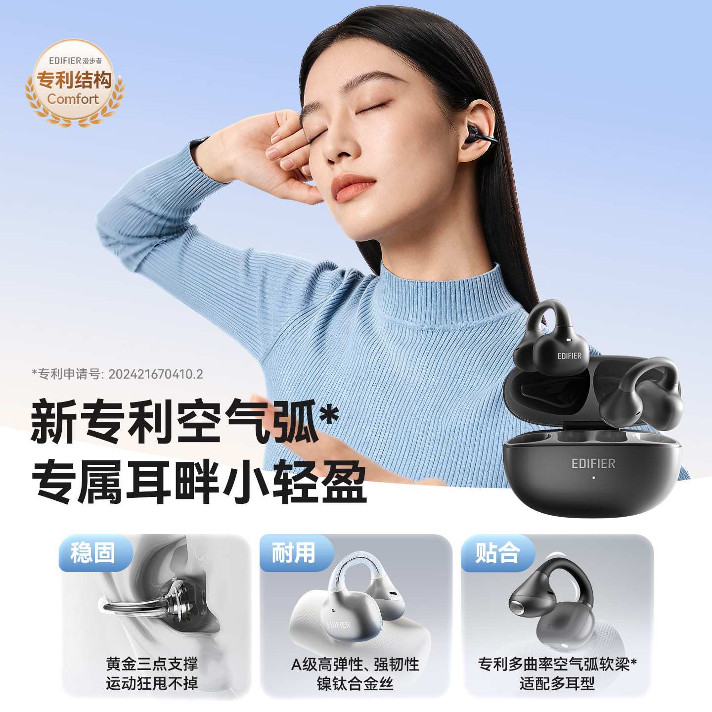 漫步者X Clip耳夹式耳机蓝牙无线不入耳开放挂耳运动跑步游戏新款