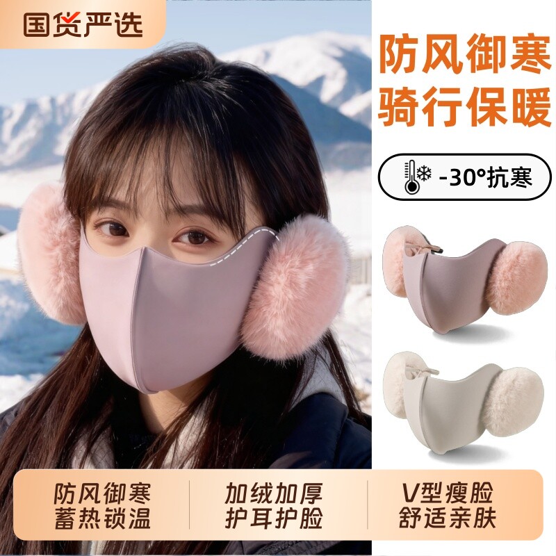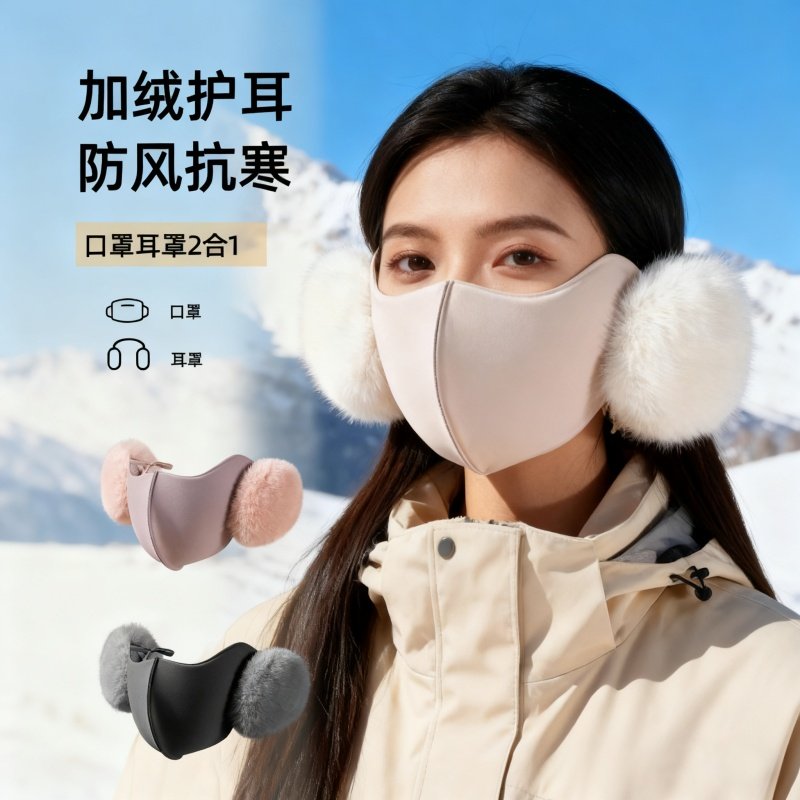 保暖耳罩口罩冬骑行车防风防寒护耳套二合一面罩女2025新款高颜值