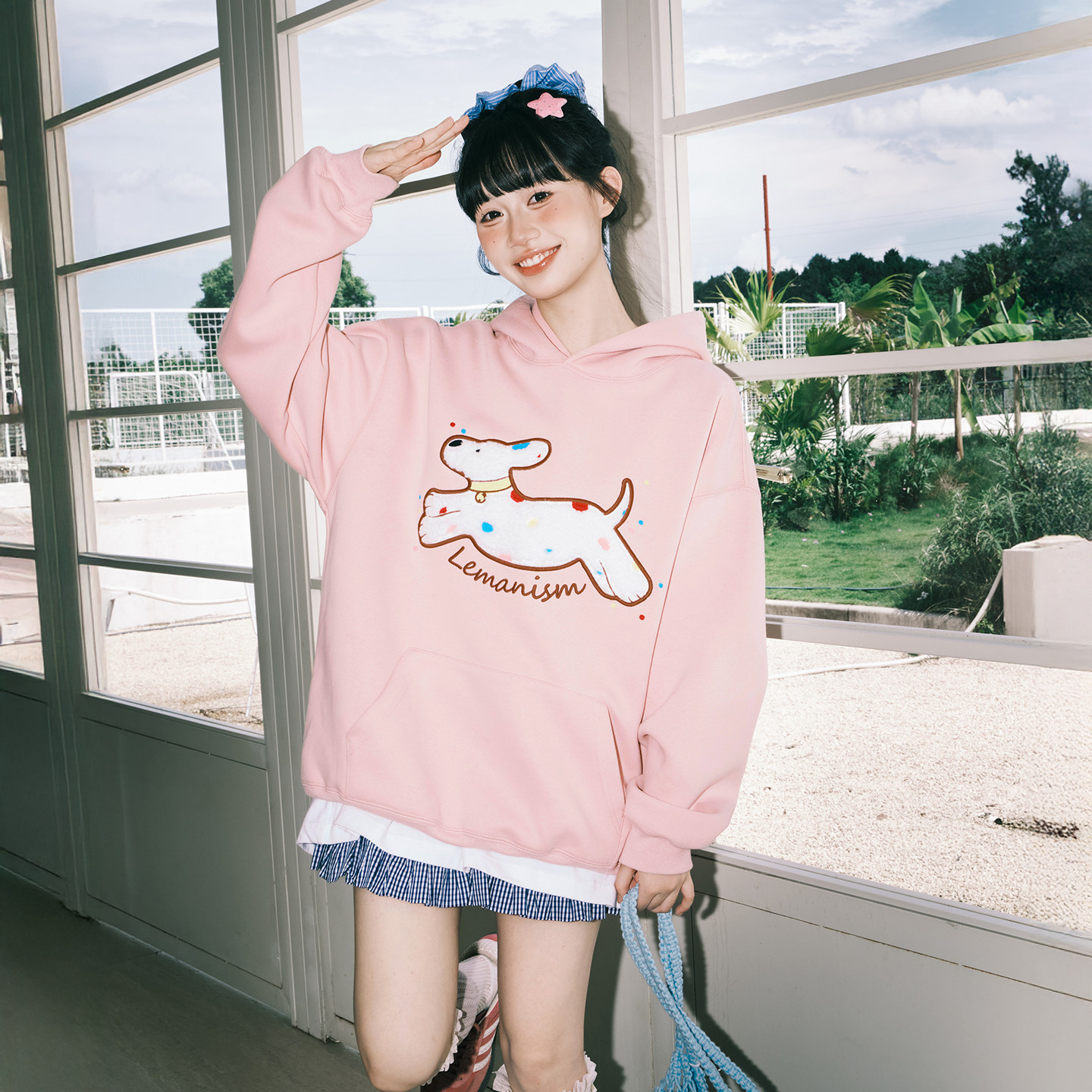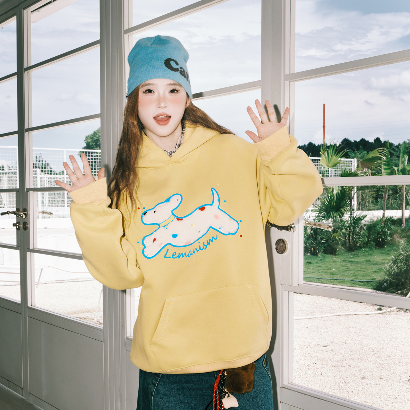【所有女生直播间】lemanism美式潮流卡通小狗毛巾绣情侣款卫衣
