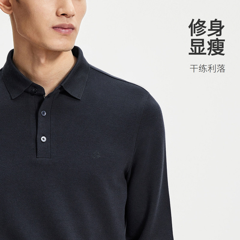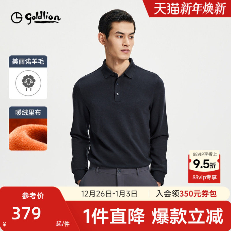 【含羊毛】金利来秋冬新款男士长袖T恤磨毛商务休闲翻领POLO衫男