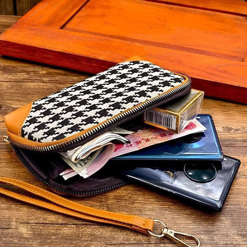 6.8寸手机包国风复古民族风简约帆布刺绣笔袋零钱钥匙拉链手拿包
