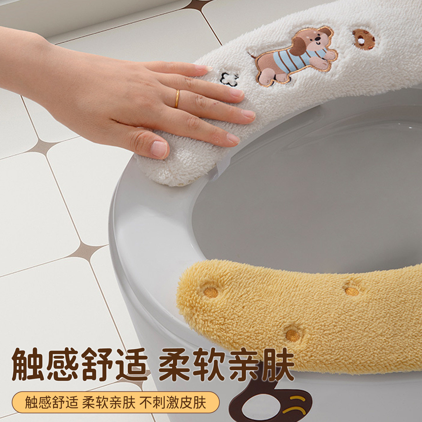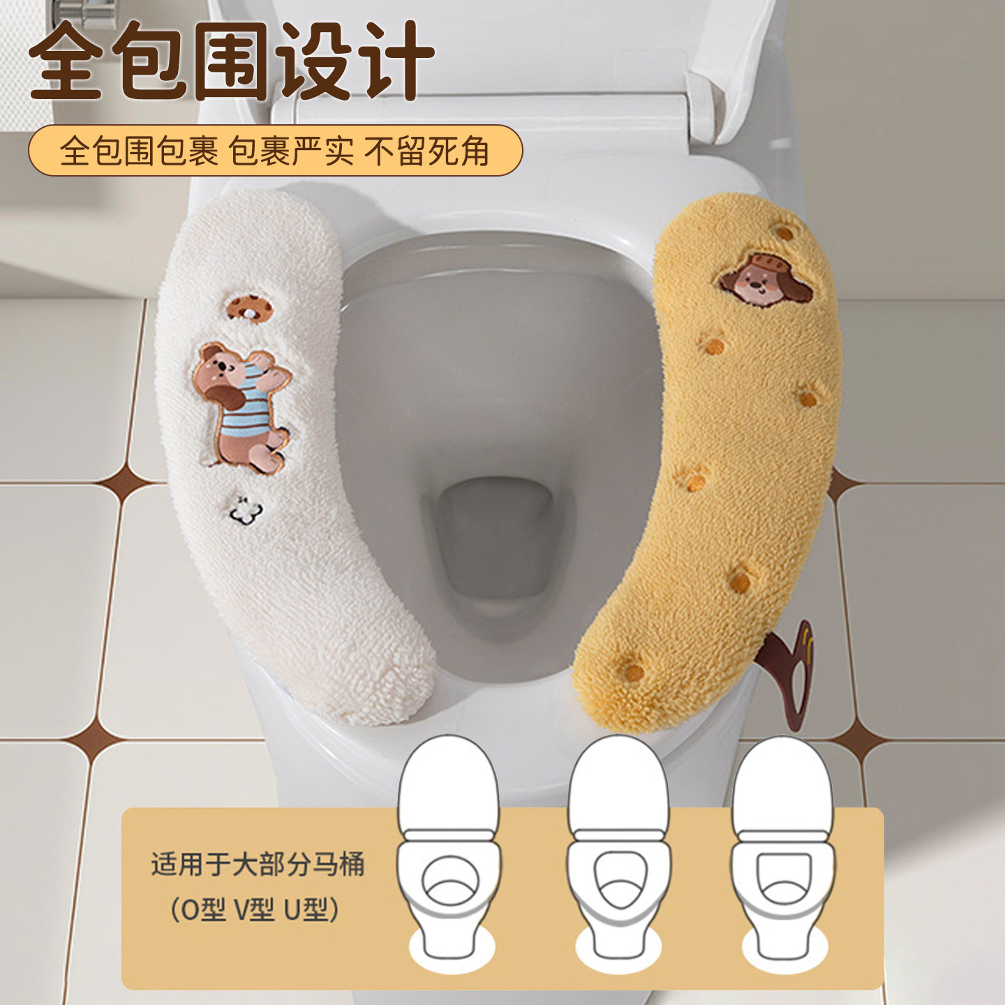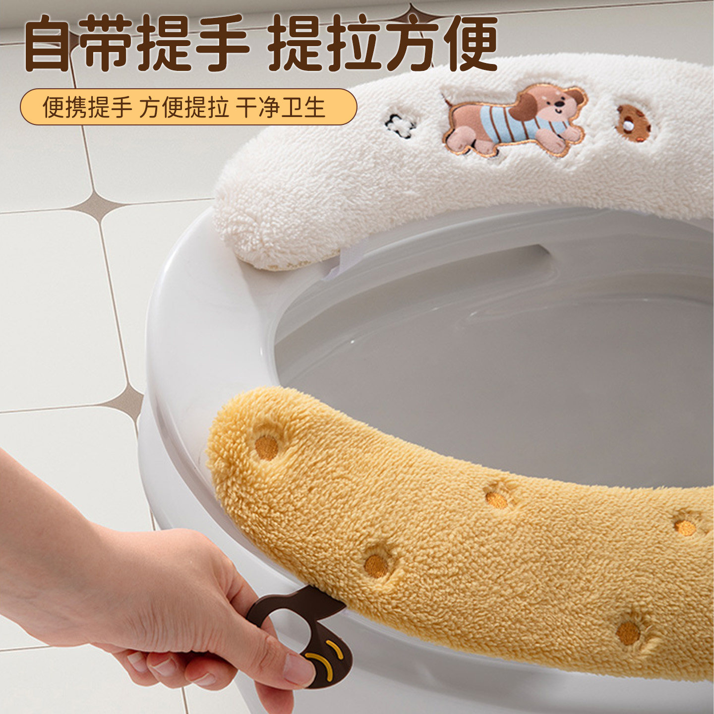 马桶冬季新款加厚毛绒贴粘扣冬天马桶圈坐便器固定垫子四季通用
