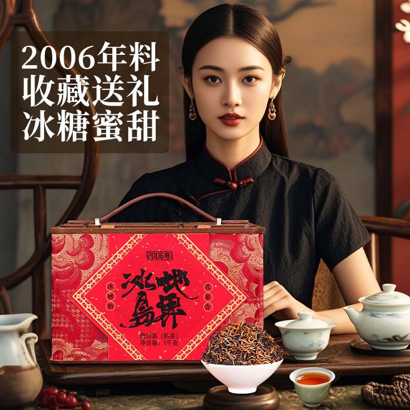 云南普洱茶熟茶十年以上冰岛宫廷金芽散茶高端礼盒装茶叶过年送礼