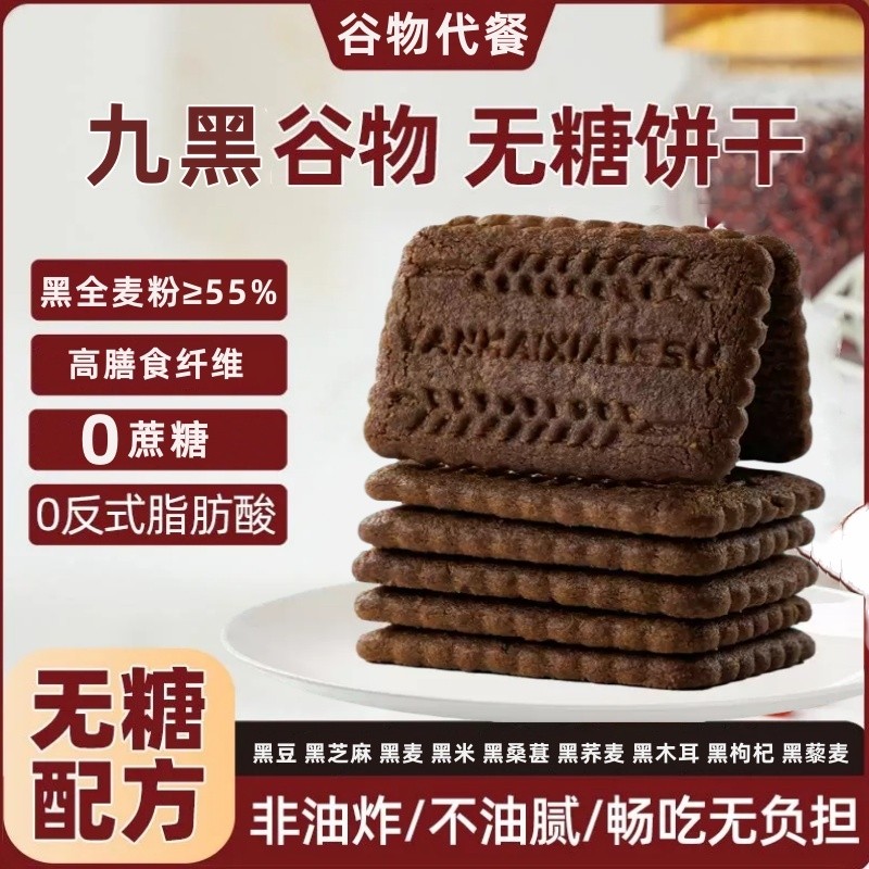 无蔗糖高纤9黑藜麦谷物饼干黑全麦粗粮控糖营养五谷杂粮代餐糕点