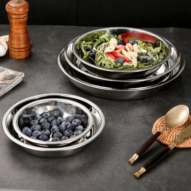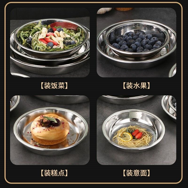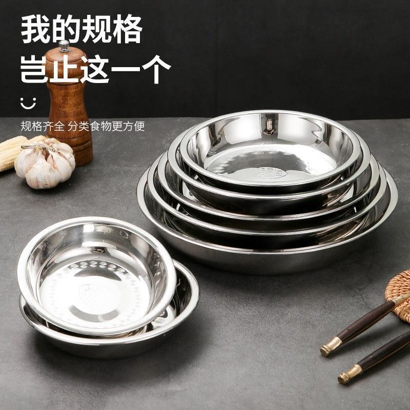 304不锈钢圆盘餐盘特厚菜碟烧烤盘子套装鱼盘深201平盘家用食品级