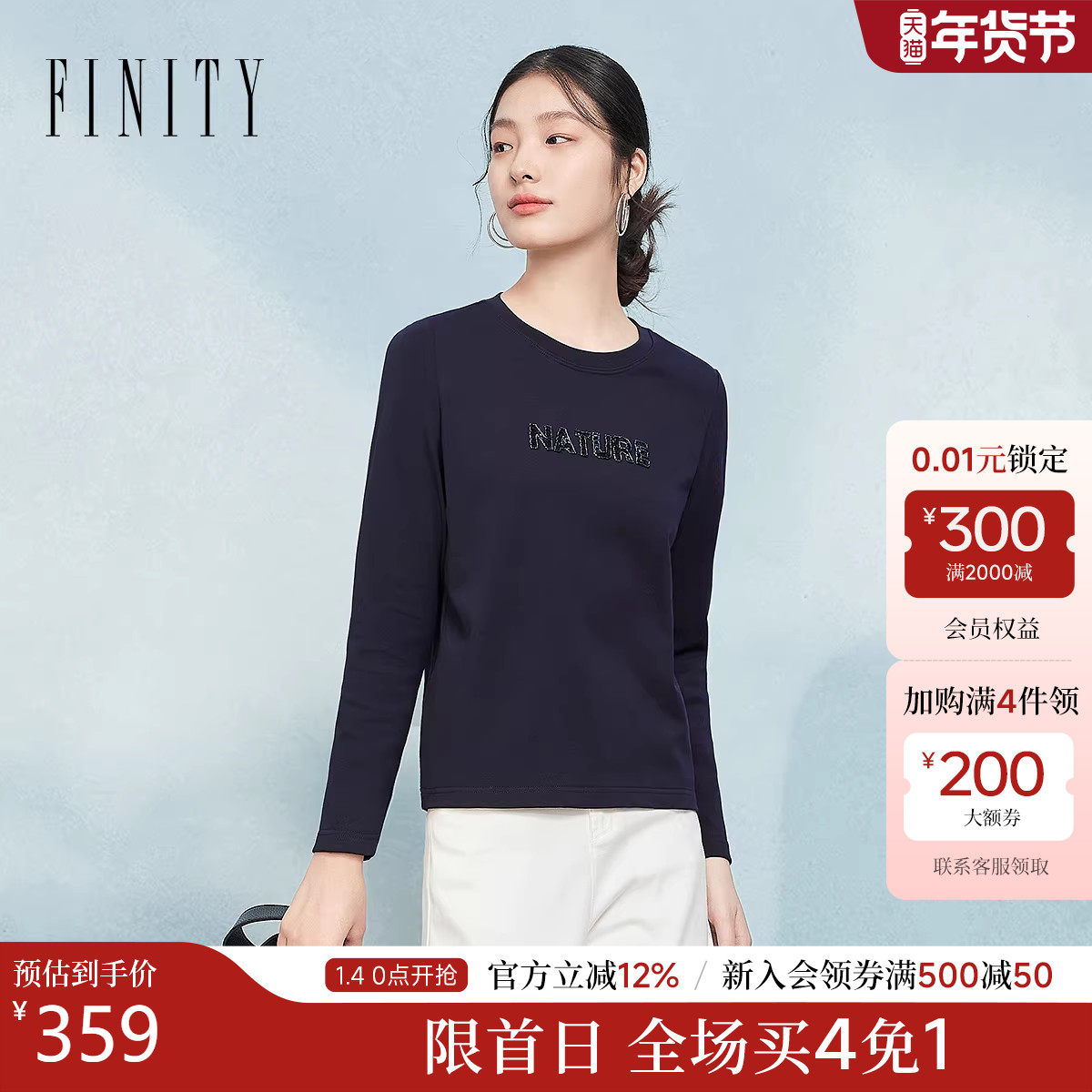 菲妮迪长袖T恤2025秋季新款简约圆领纯色休闲通勤上衣女