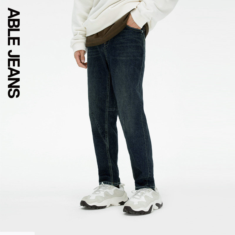 ABLE JEANS【立体锥形裤】春秋款男士复古中腰弹力修身小脚牛仔裤