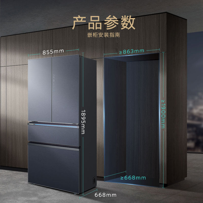 西门子529L超维零嵌法式多门超薄嵌入一级能效保鲜冰箱AA657C