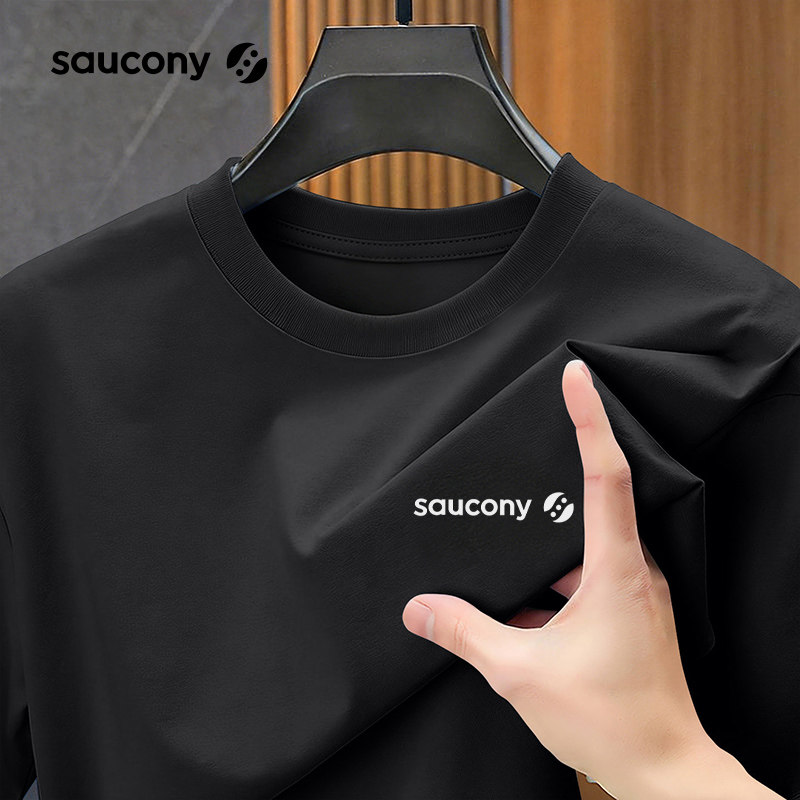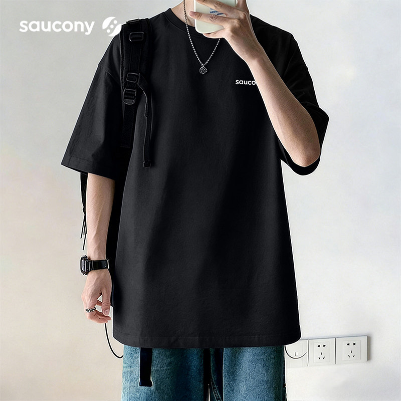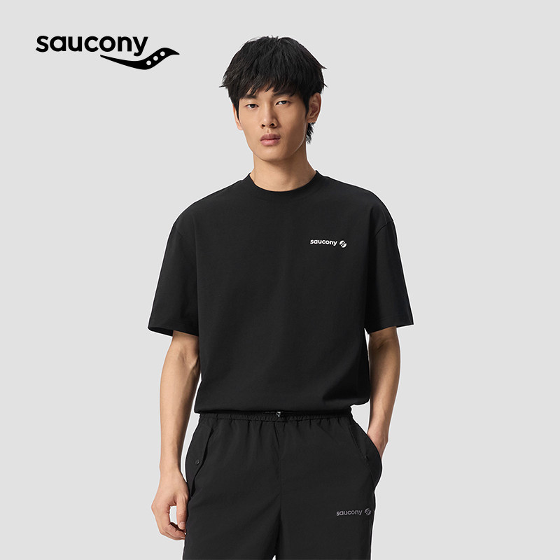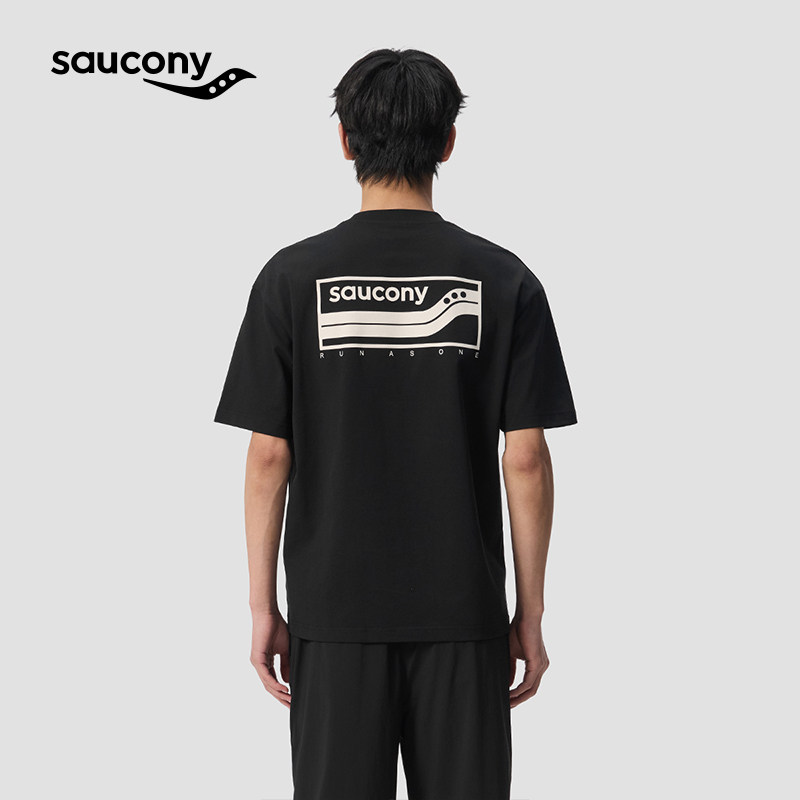 Saucony索康尼休闲百搭上衣棉质宽松T恤情侣潮流体恤黑色圆领短袖