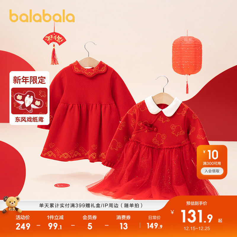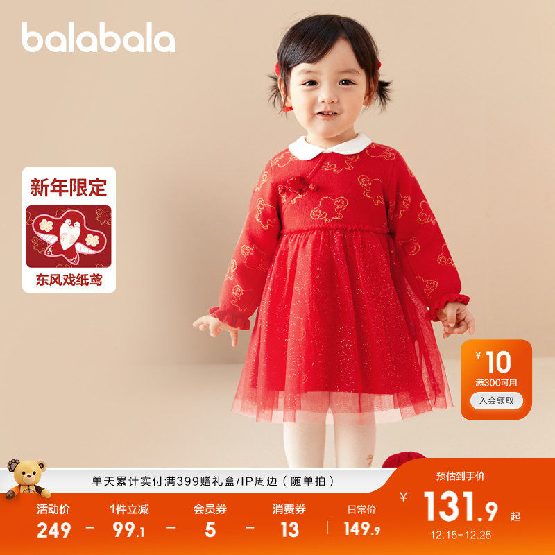 巴拉巴拉童装婴儿连衣裙儿童裙子春秋装女童宝宝公主裙国风可爱潮