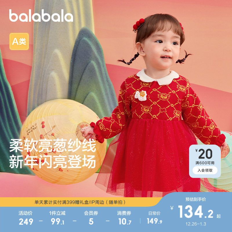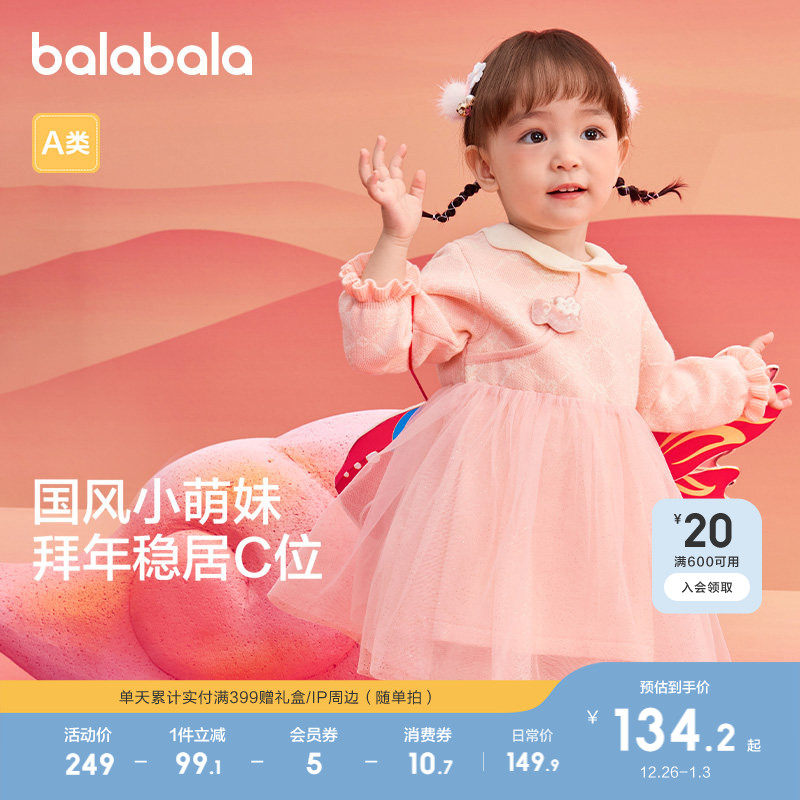 巴拉巴拉童装婴儿连衣裙儿童裙子2025新款女童公主裙新中式春秋装