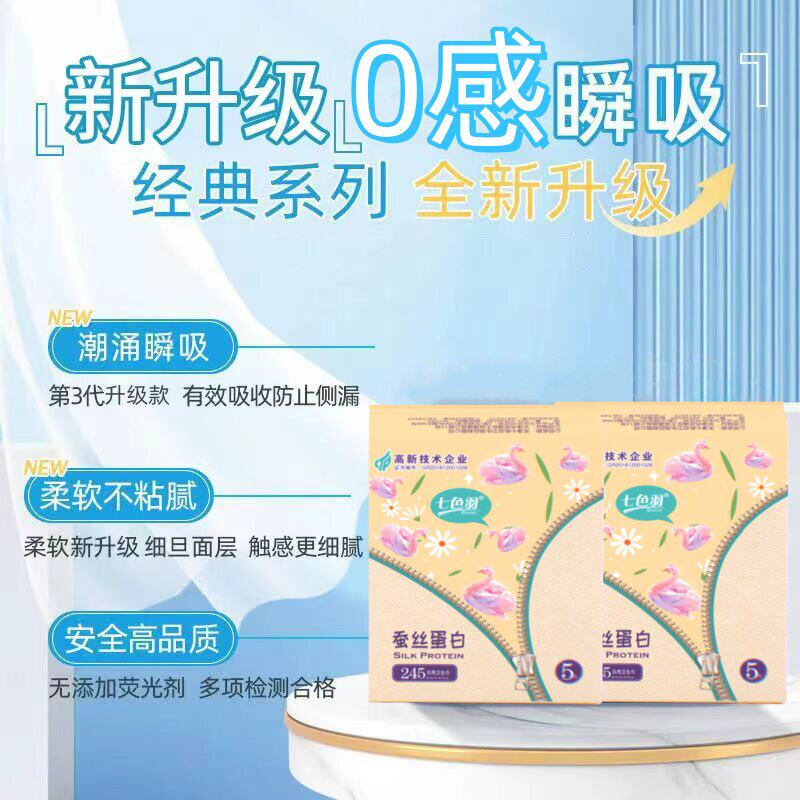 日用型亲肤高弹透气蚕丝蛋白卫生姨妈巾工厂直发