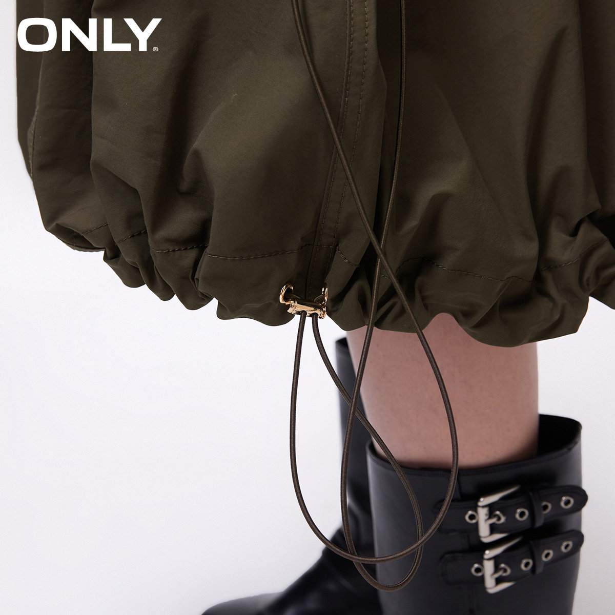 腰部金属装饰 松紧腰头 底摆抽绳