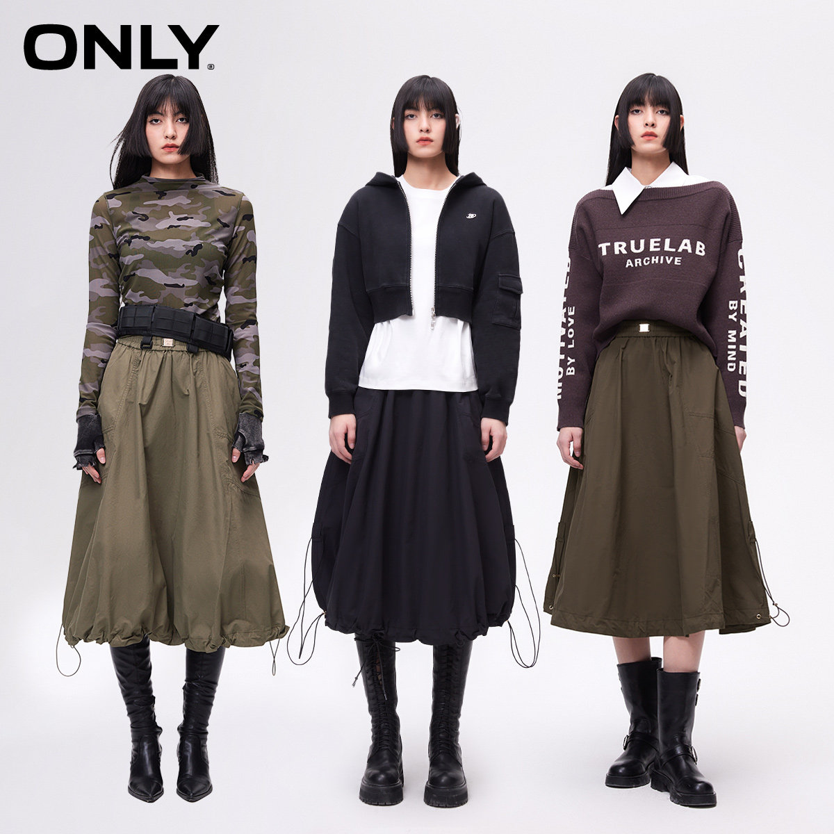 【所有女生的衣橱直播间】极尔斯 斜纹半身裙/高领T恤