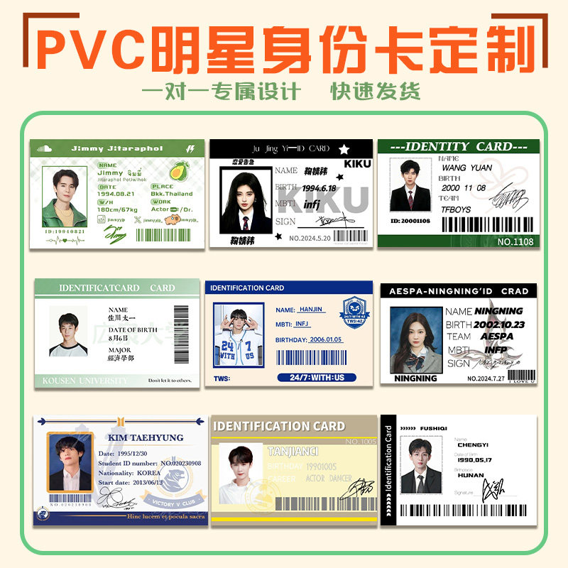 身份卡片定制明星周边pvc卡设计id卡自印小卡照片装饰贺卡定做