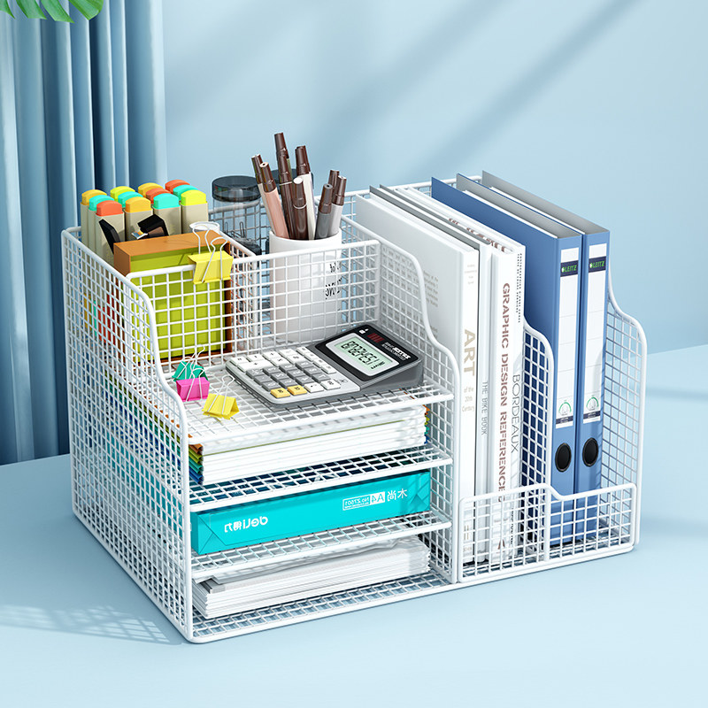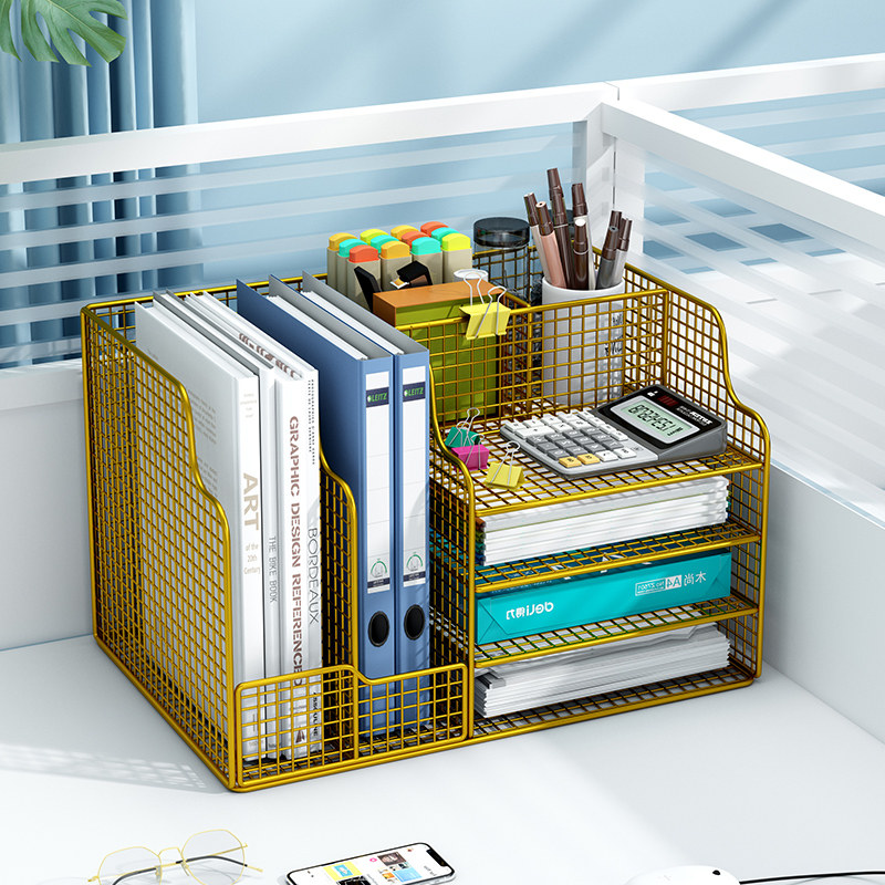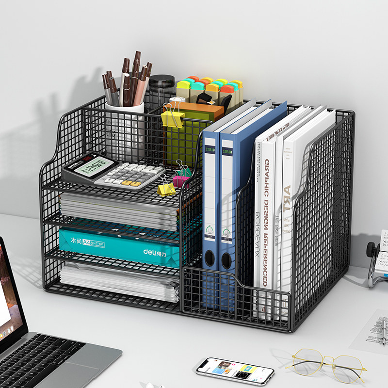 办公桌收纳置物架文件收纳盒办公用品文件架桌面书架多层大容量文件框文件夹A4纸资料档案整理架金属书立架