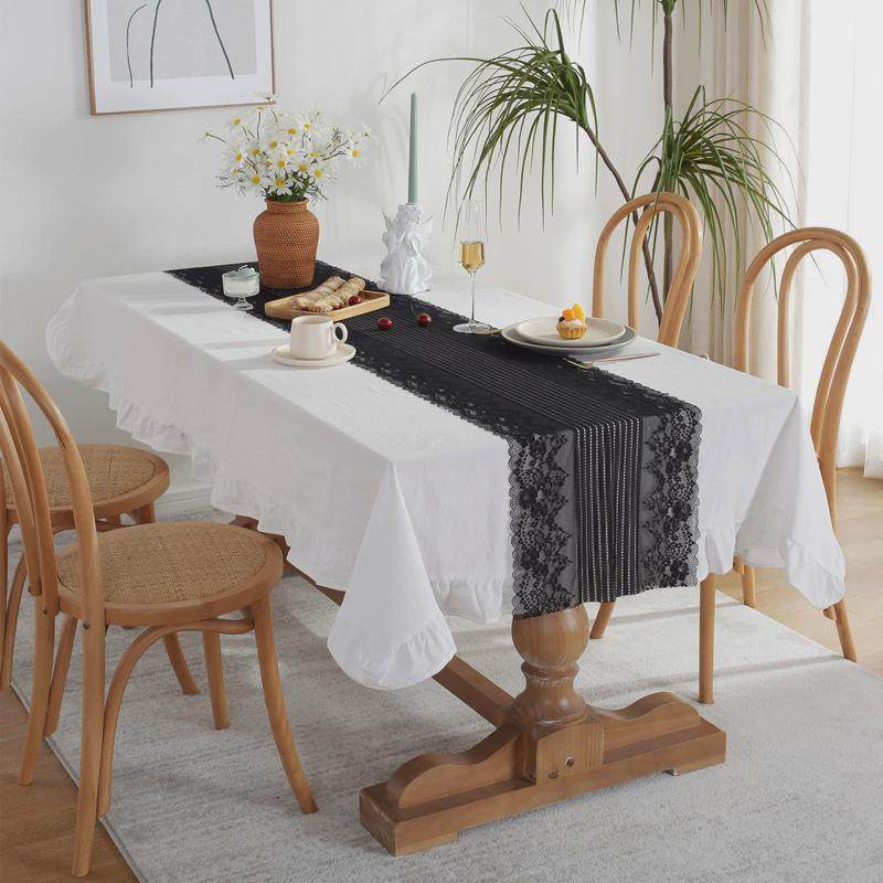 现代简约纯色荷叶边水洗棉撞色全棉蕾丝桌旗茶几台布餐桌布