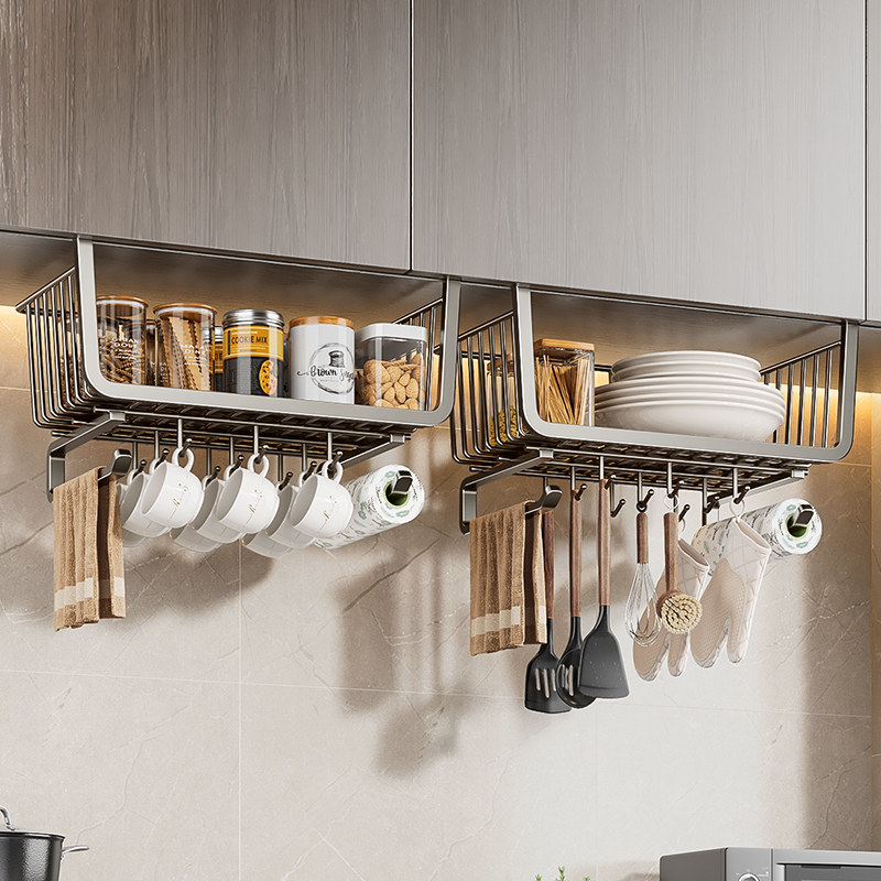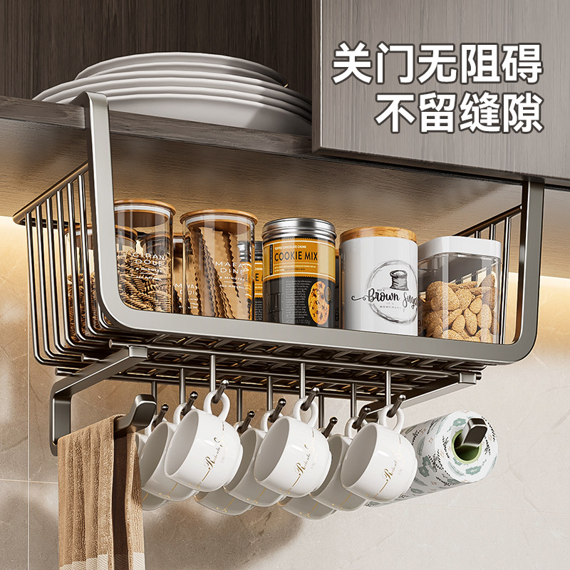 厨房置物架收纳下橱柜挂架纸巾架挂篮分层架储物架调料台面保鲜膜