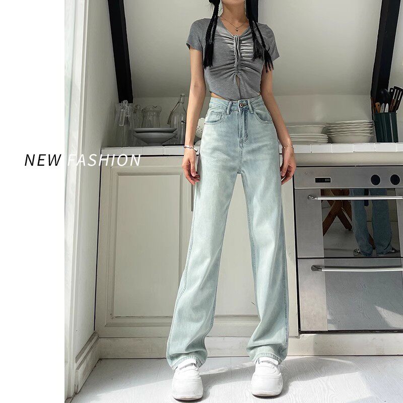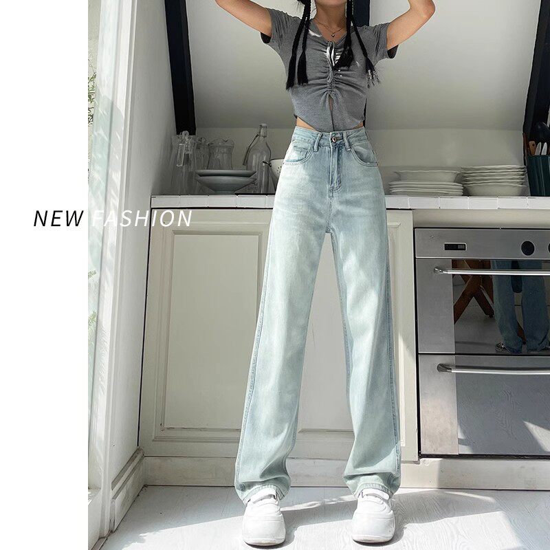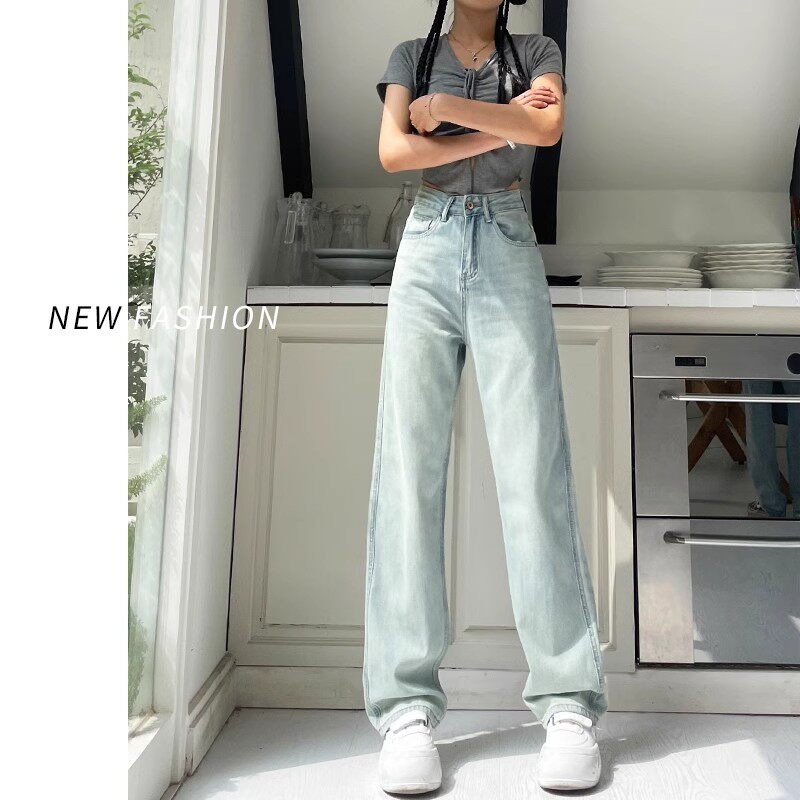 浅色直筒牛仔裤女春季2026新款大码胖mm高腰宽松显瘦窄版阔腿长裤