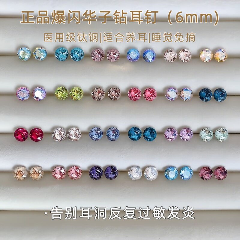 6mm医用级钛钢华子耳钉独特免摘耳骨钉耳蜗钉钻螺旋超闪金色锆石