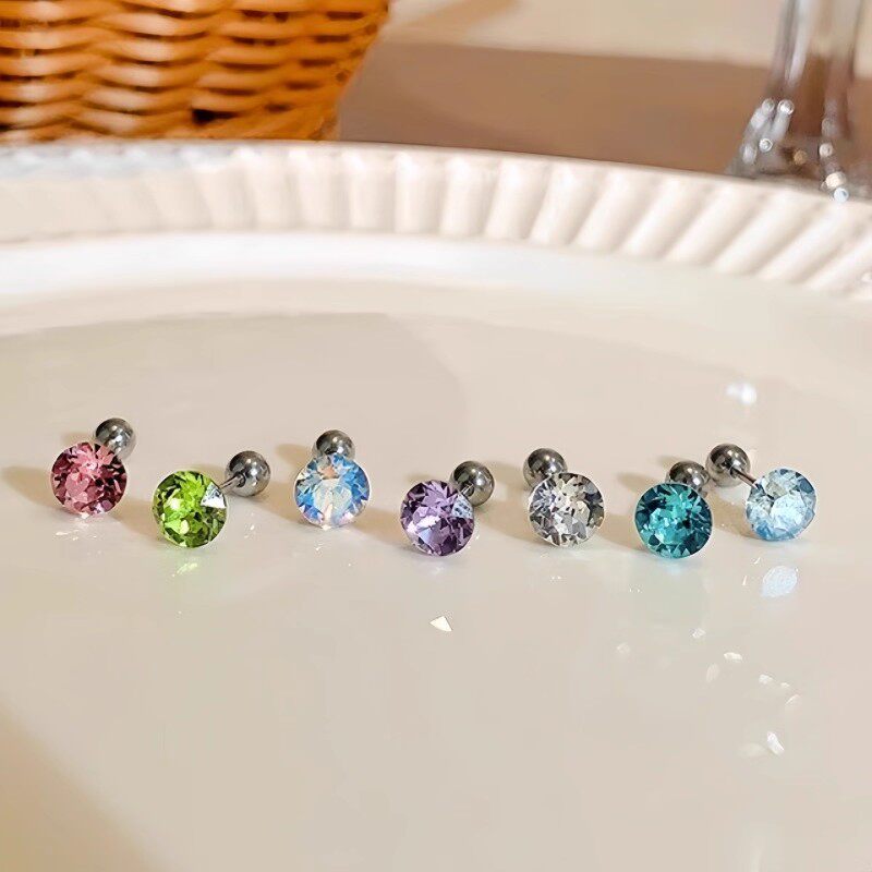 999纯银耳钉女养耳洞耳骨钉小众高级感锆石耳蜗钉水钻耳环银耳饰