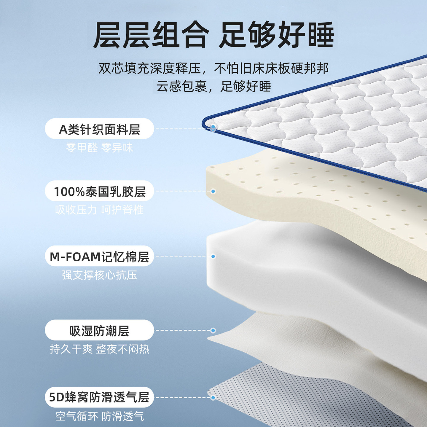 软硬适中 高弹久睡不塌 透气不闷热
