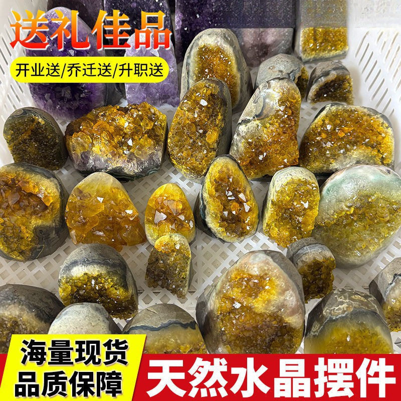 天然黄水晶摆件消磁净化加色黄水晶簇招财水晶洞办公室摆件家居
