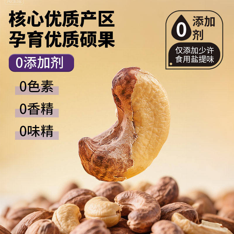 憨豆熊带皮腰果仁500g袋原味盐焗紫皮新货坚果干果
