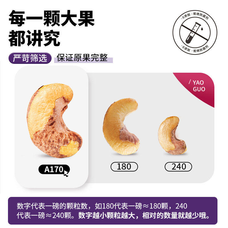 百草味紫皮腰果仁大颗粒500g盐焗腰果休闲零食坚果食品新货健康