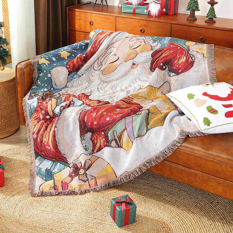 新款全棉线毯提花挂毯圣诞款沙发巾网红毛毯午睡沙发盖毯四季通用