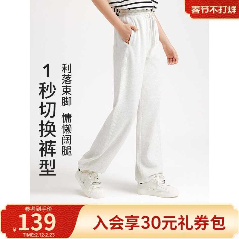 Champion冠军直筒卫裤女2026春季新款针织长裤宽松阔腿裤休闲裤女
