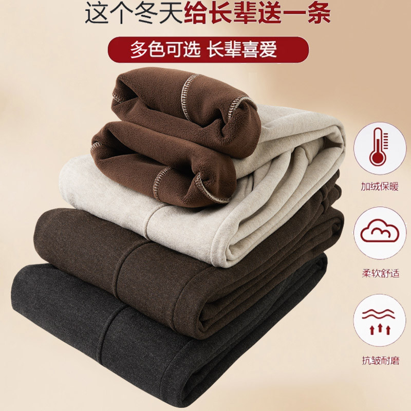 妈妈裤子春秋款松紧高腰弹力中老年女裤宽松大码直筒奶奶加绒长裤