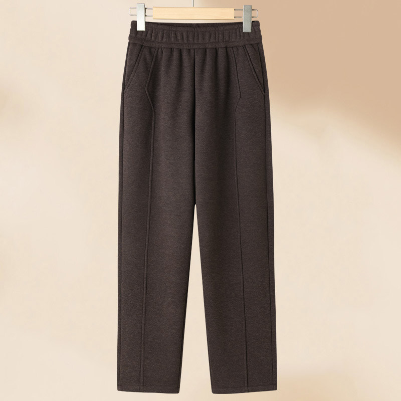妈妈裤子秋冬休闲裤洋气奶奶中老年女裤冬季加绒加厚保暖长裤咖色