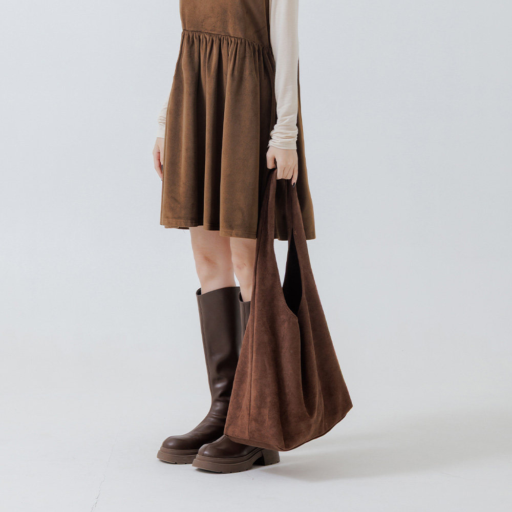 QUEENSHOP 2025秋冬新品女装质感雾面绒布单肩包附小包06070436