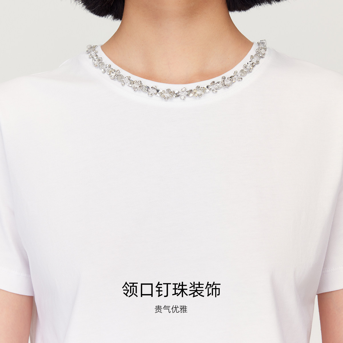 Vero ModaT恤25秋季新款纯棉正肩钉珠装饰纯色短袖上衣325301006