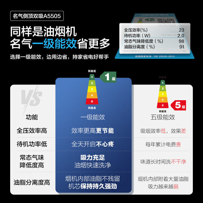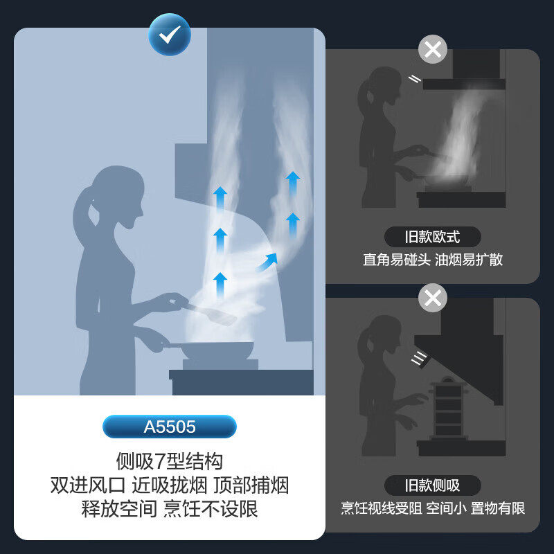 老板名气A5505+A6107B油烟机变频顶侧双吸超薄近吸厨房大吸力脱排