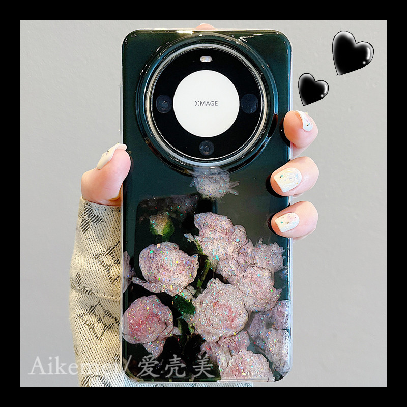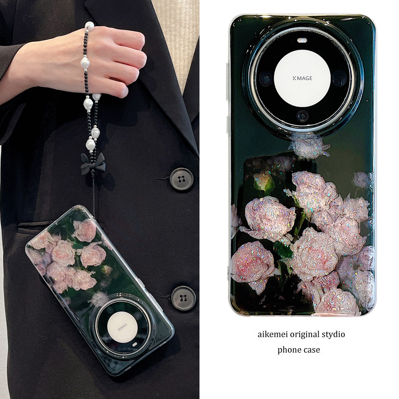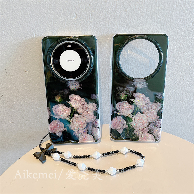 适用华为mate60pro+手机壳ins高级感闪粉玫瑰花Mate60链条挂绳mate70pro新款双层pura8070pro+奢华全包防摔女