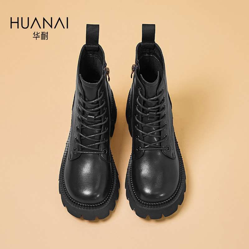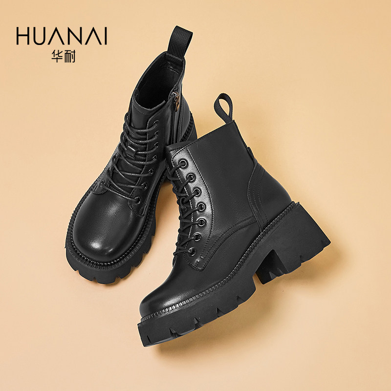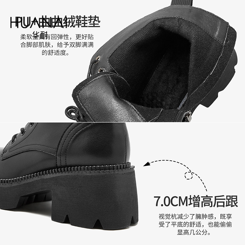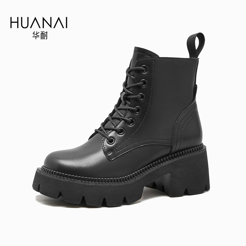 华耐马丁靴女款2025新款秋冬英伦风黑色短靴厚底增高粗跟靴子加绒