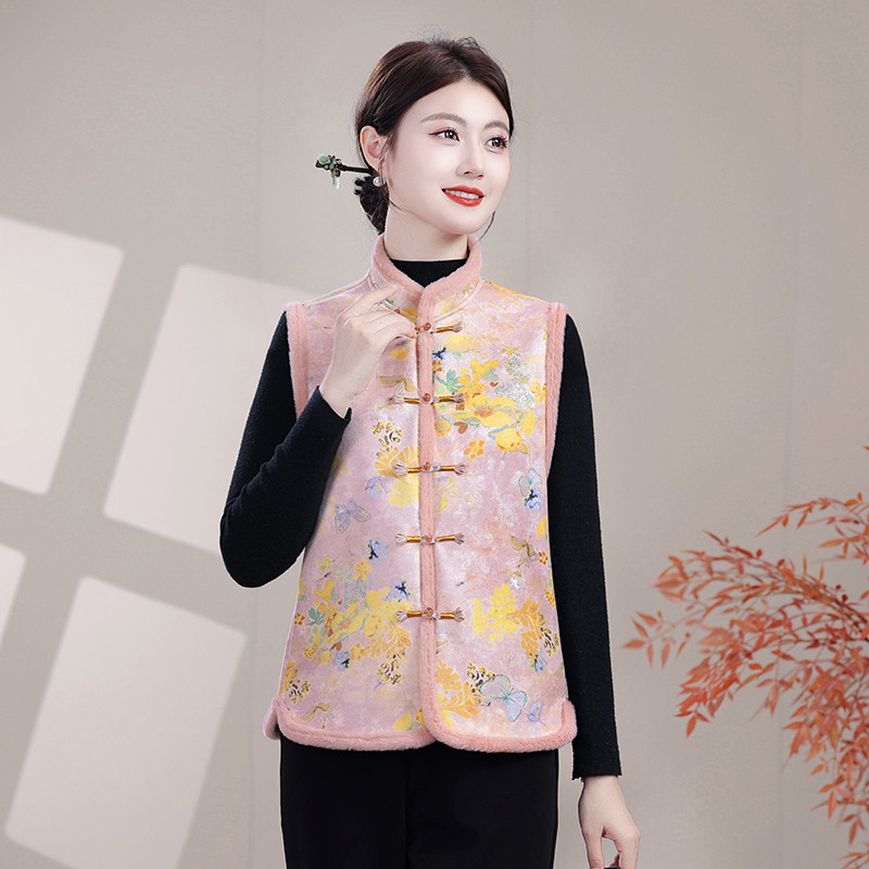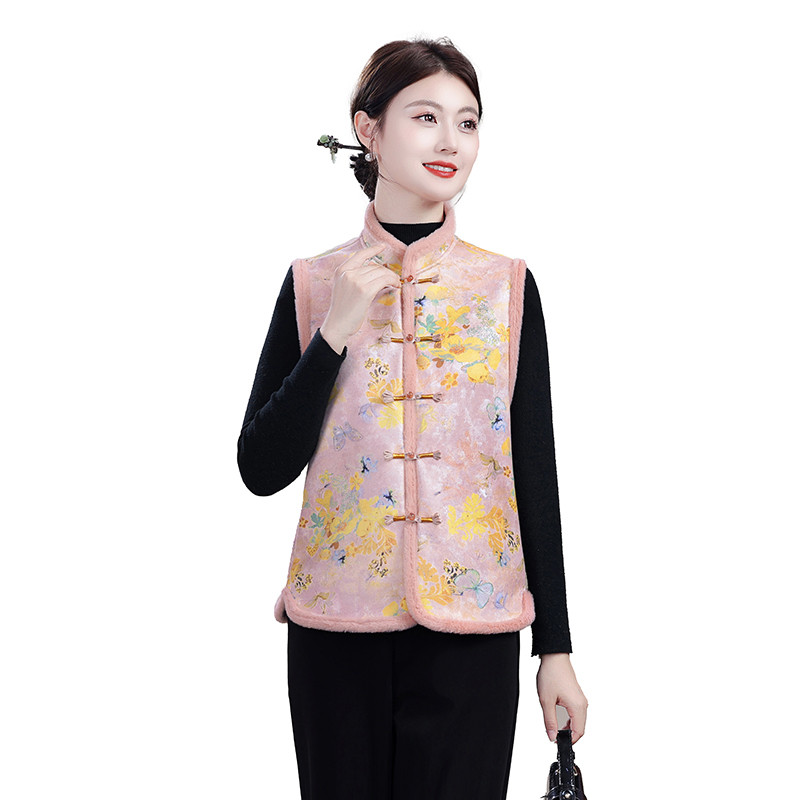 过年时尚新款洋气加绒保暖马甲国风中式盘扣立领2026坎肩年轻粉色