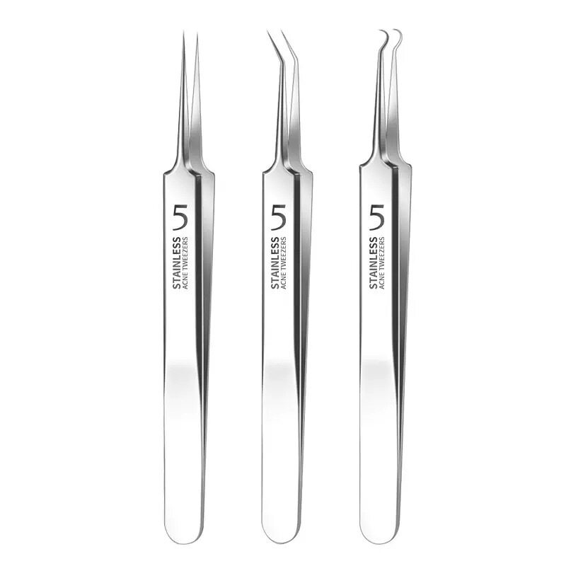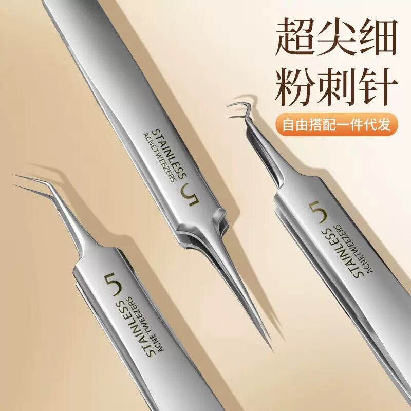 不锈钢鼻头粉刺针黑头夹挤痘工具美容院超尖细胞夹祛痘粉刺夹套装