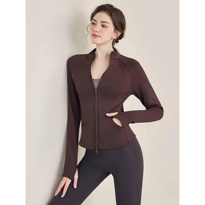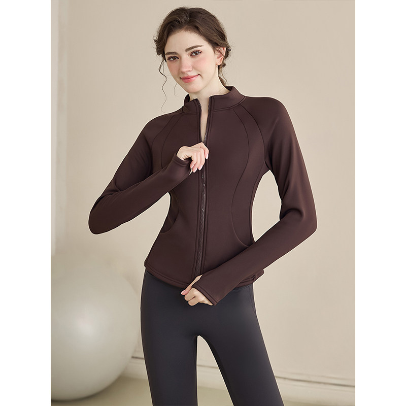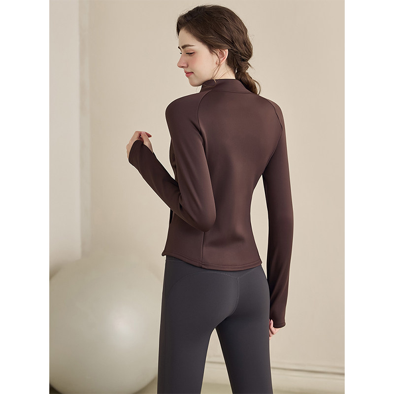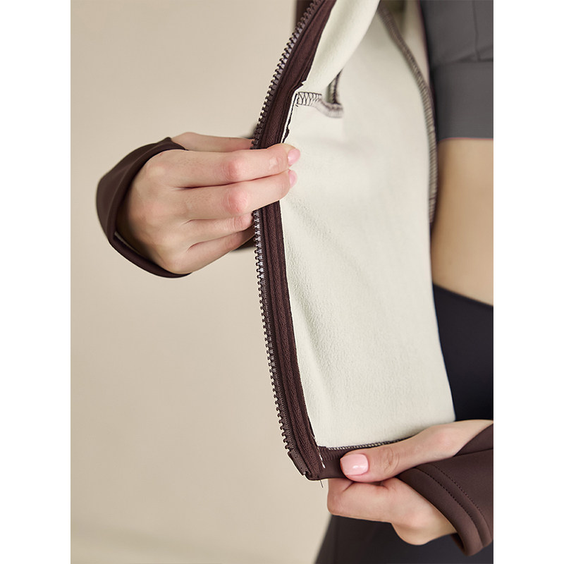 立领拉链瑜伽服外套女秋冬加绒加厚保暖运动上衣跑步骑行服健身服