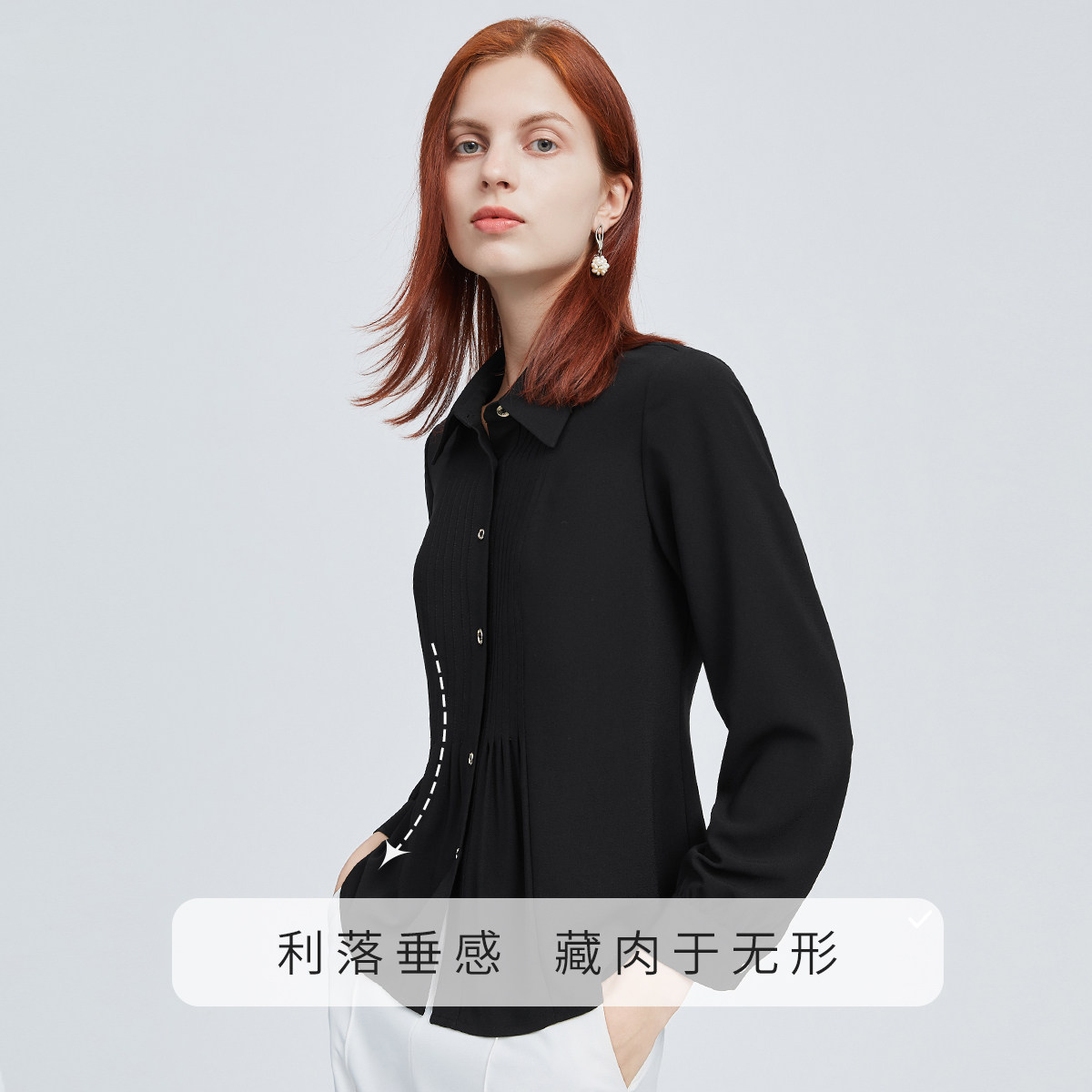 FINITY黑色衬衫2025秋季新款职场简约衬衣休闲气质秋长袖上衣女