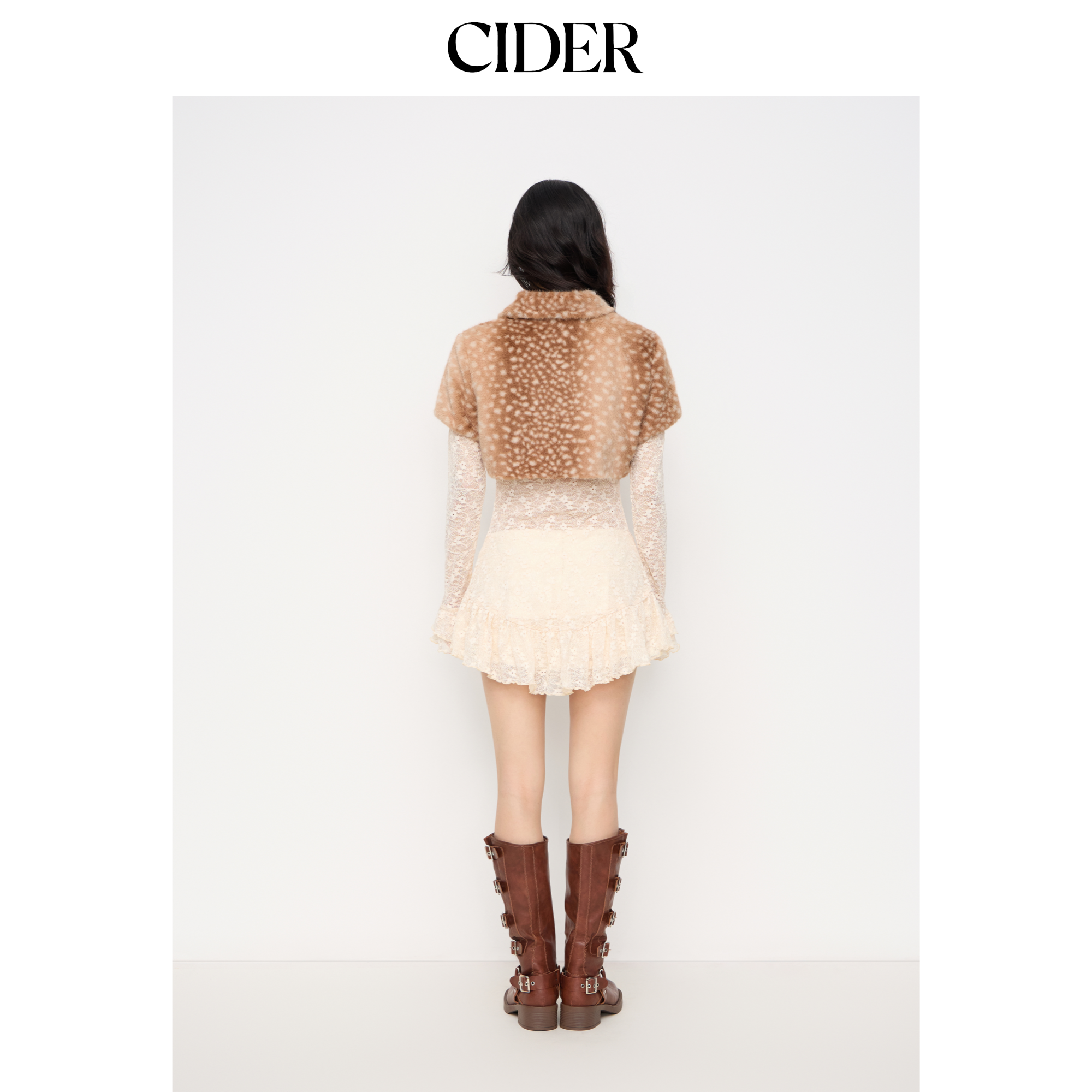 【明星同款】CIDER 都市游牧风仿羊毛翻领小鹿印花夹克114881931