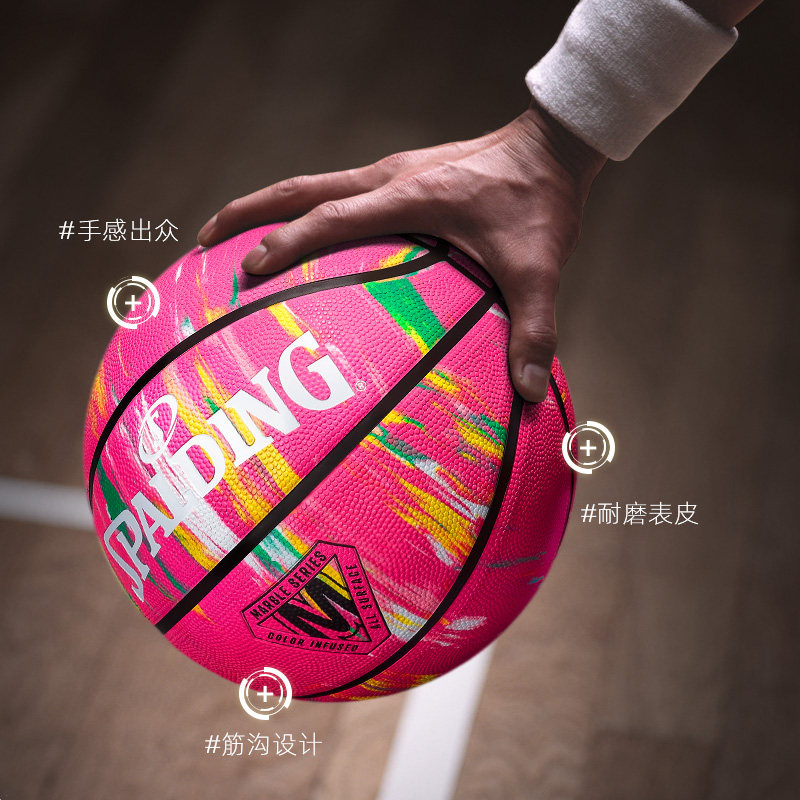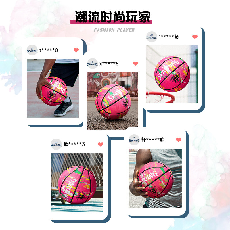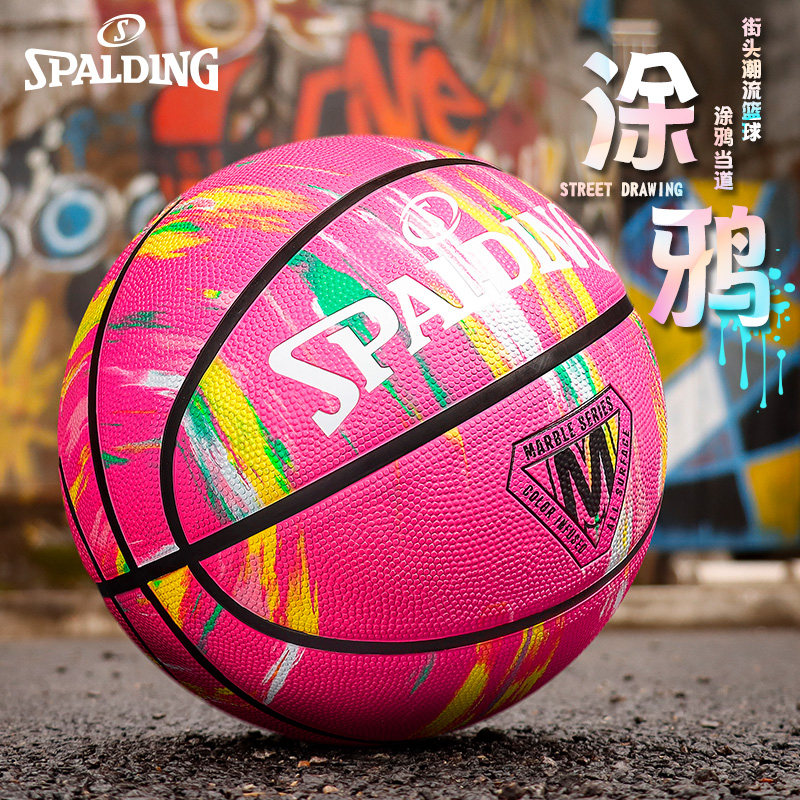 斯伯丁篮球炫彩印花粉色室外耐磨圣诞情人节礼物送男朋友女大学生