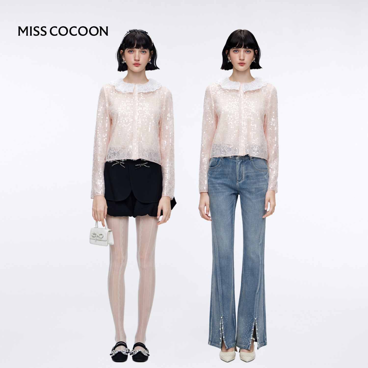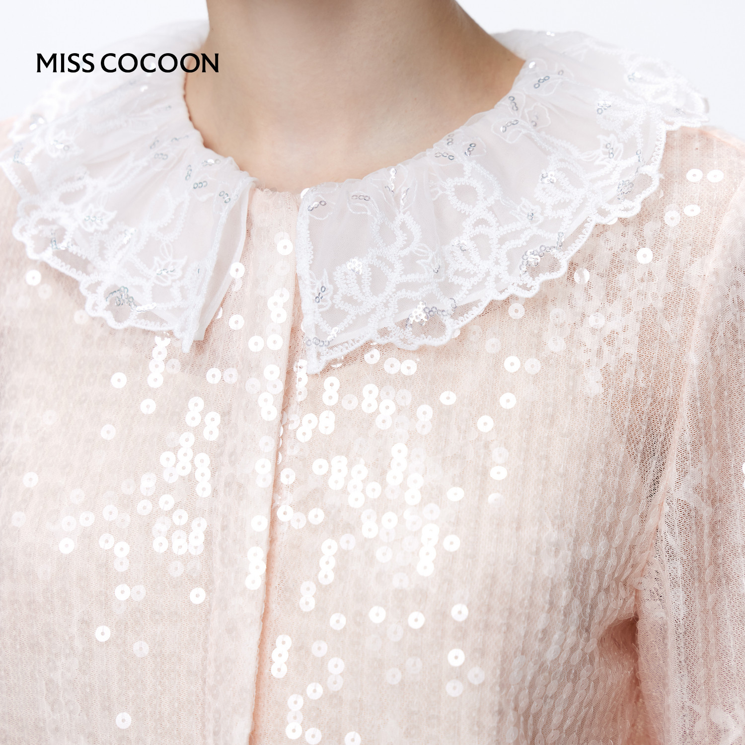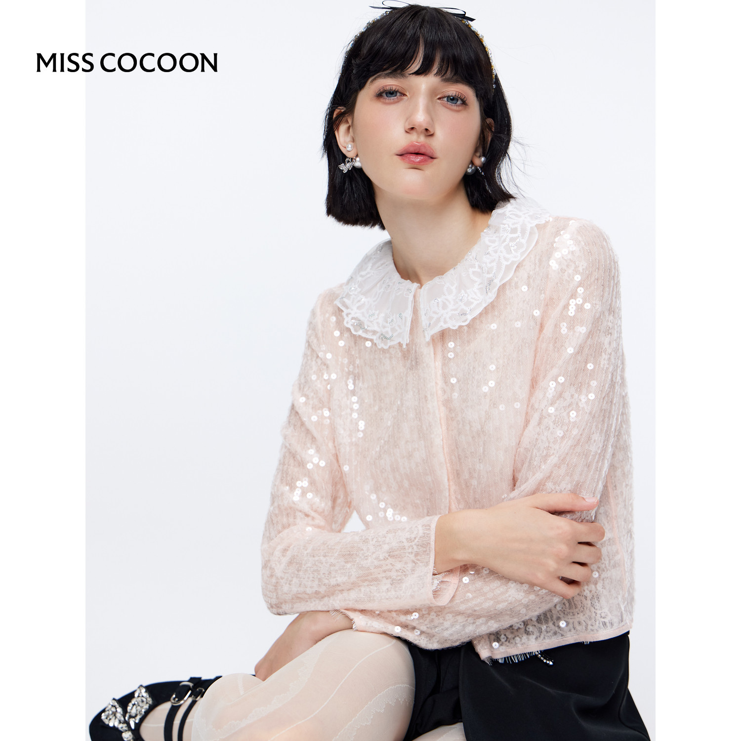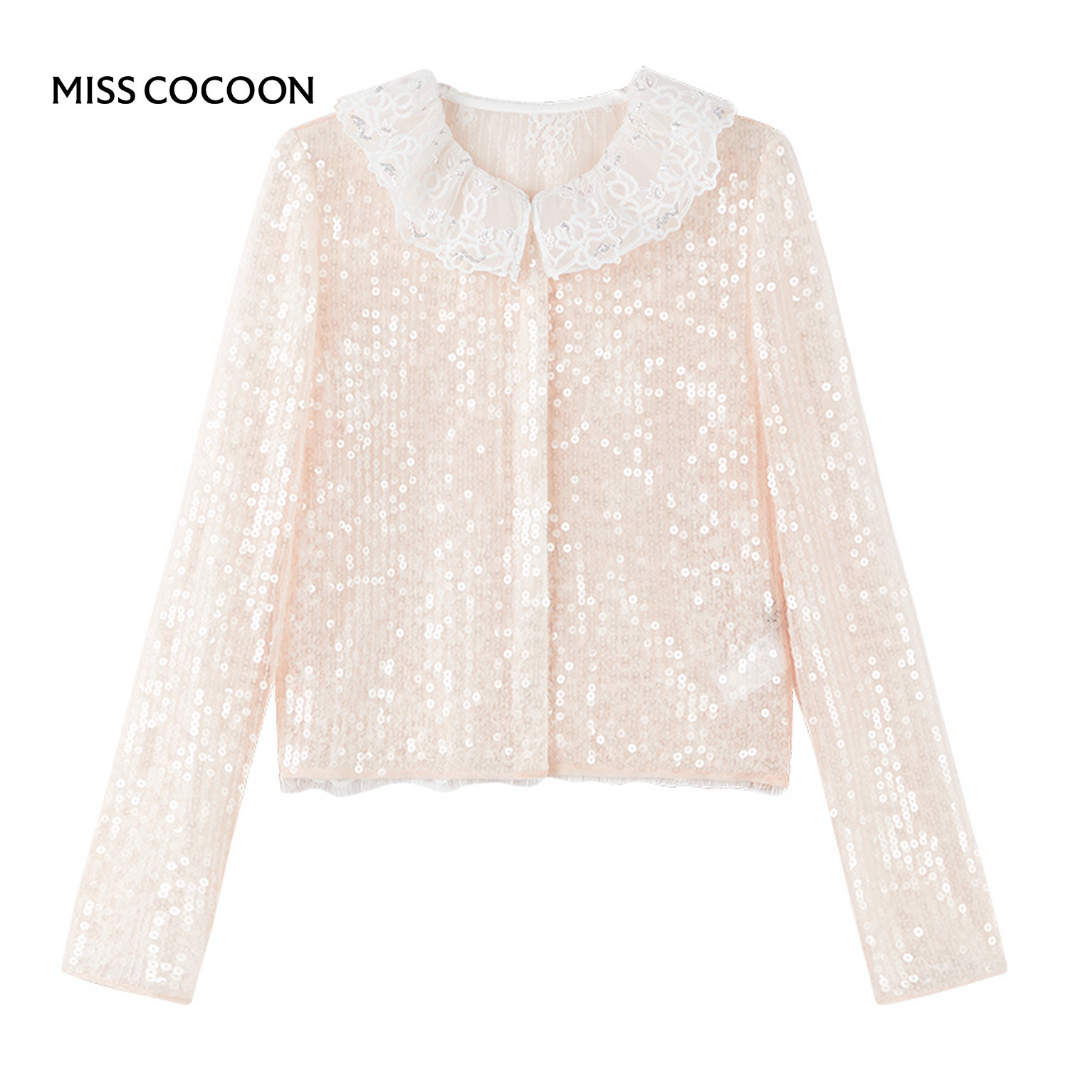 MISSCOCOON可可尼亮片蕾丝雪纺衫女2025秋新款千金风高级感开衬衫