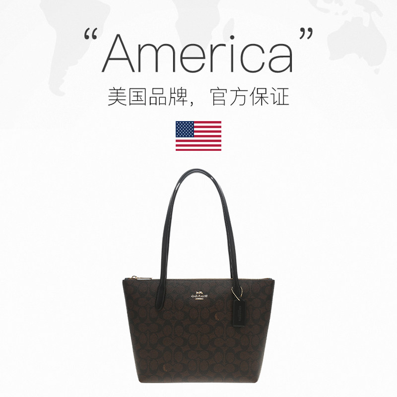 【自营】COACH/蔻驰拉链托特包单肩包购物袋妈咪包奢侈品女包