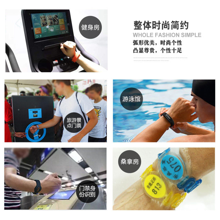 RFID手腕卡复旦IC卡FM1108手环S50硅胶NFC腕带ID卡TK4100芯片游泳足浴手牌防水洗浴储物柜IC手表卡定制印字