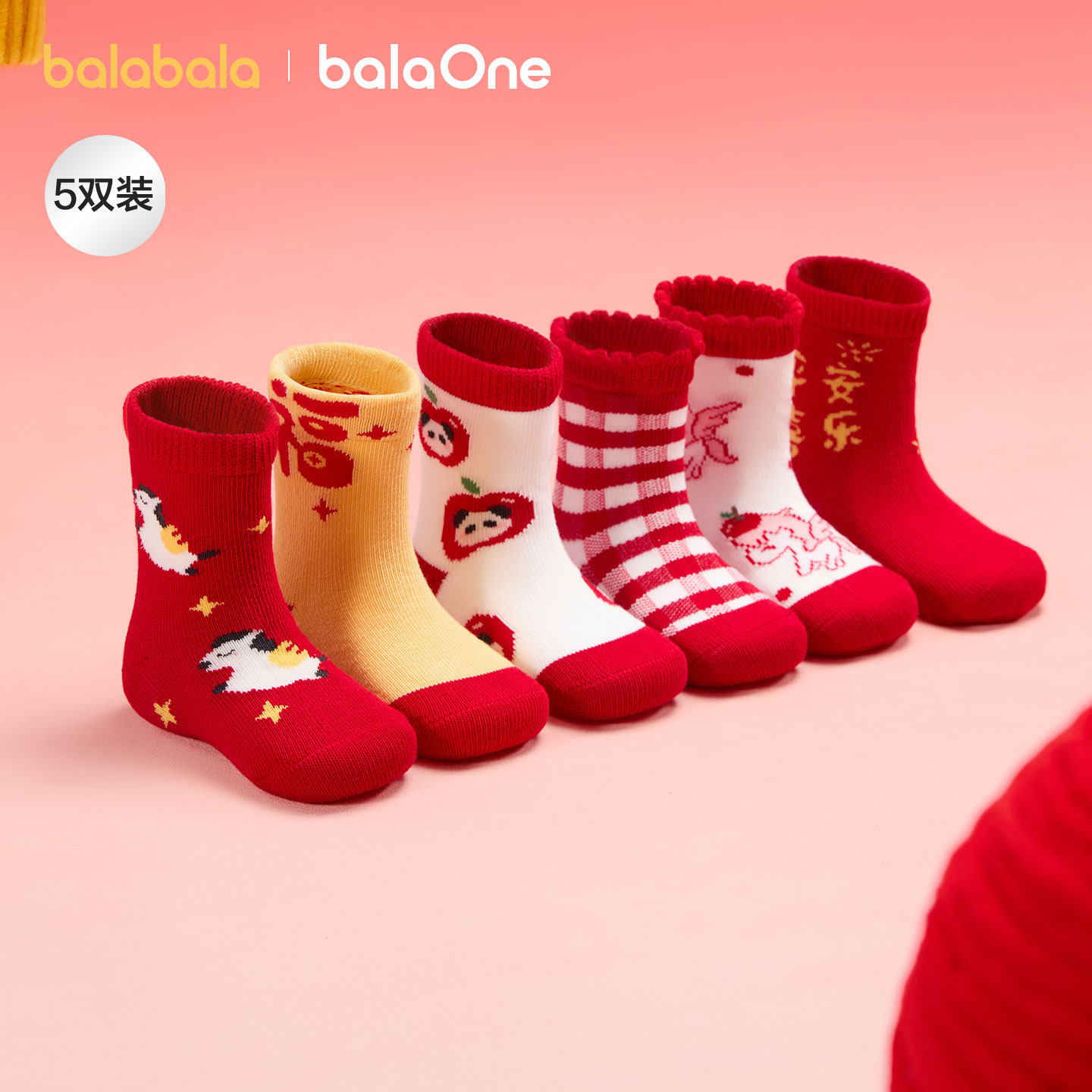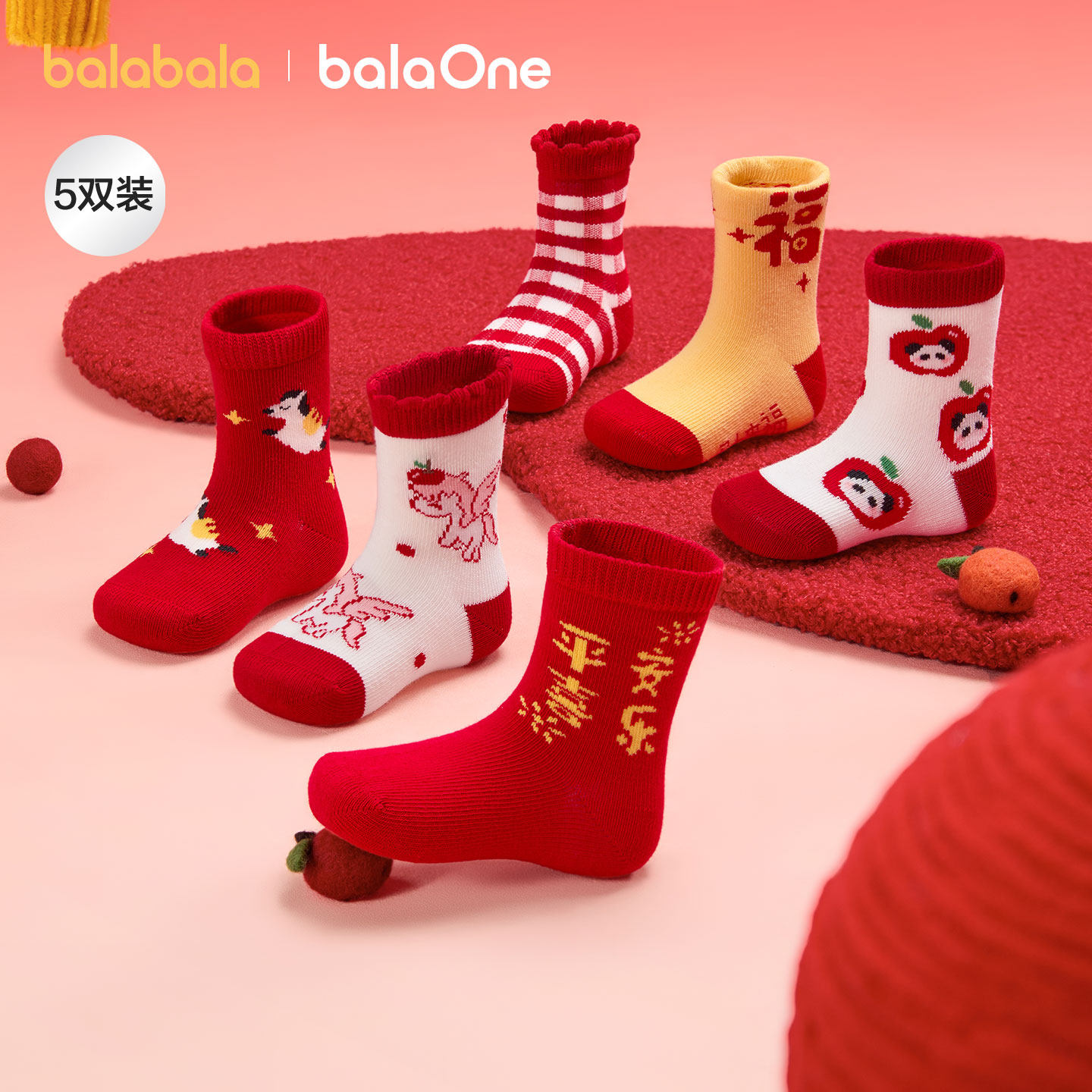 巴拉巴拉儿童袜子春秋男女童棉袜婴幼儿新年季马年红色中筒五双装