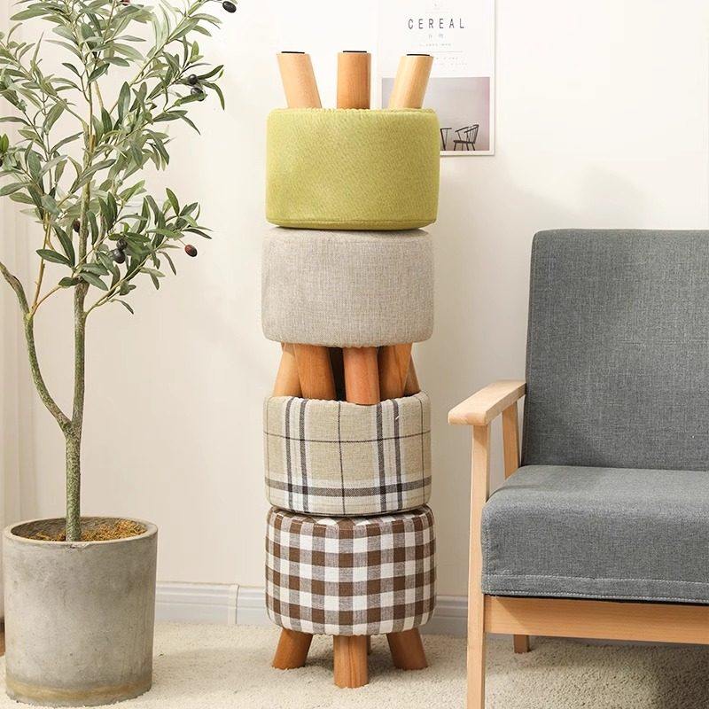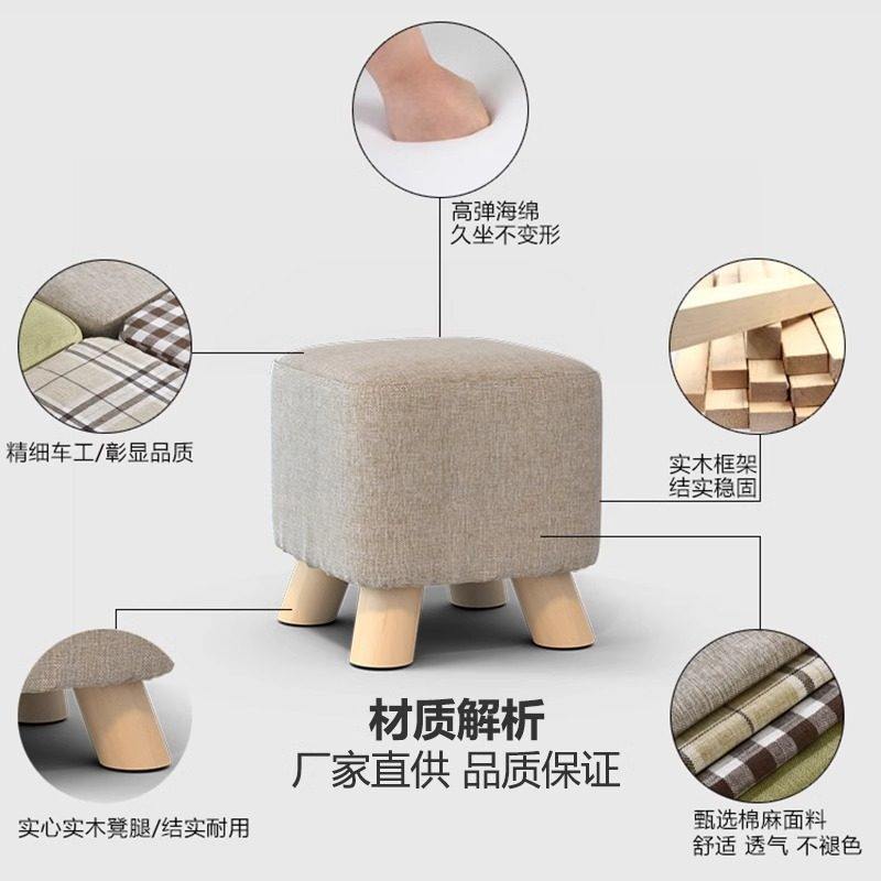 家用小凳子实木布艺客厅休闲沙发搁脚凳矮凳门口换鞋凳坐墩圆凳